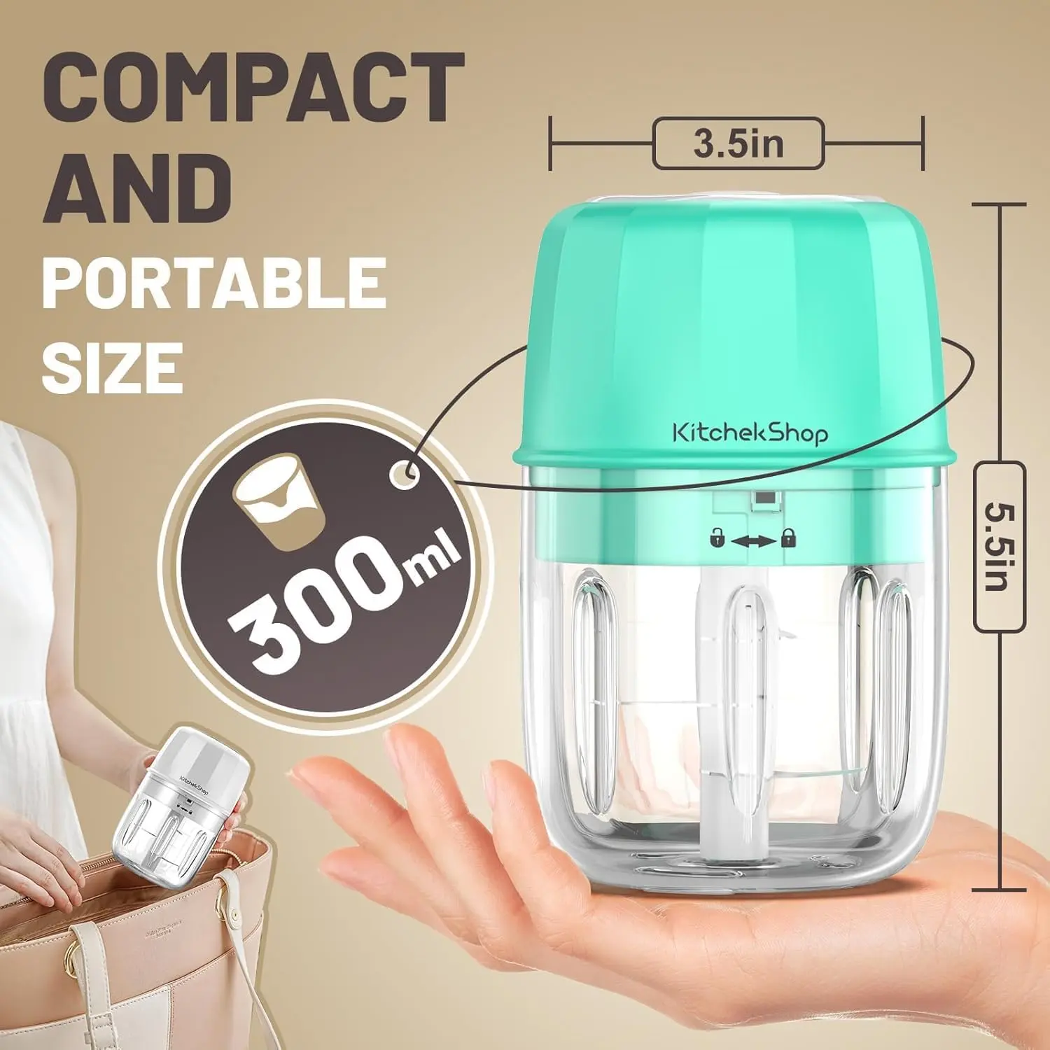 ·MULTI-PURPOSE MINCER: Handy small size 3*5.5''. The size is small, but its capacity is an upgraded 350 ml, which is enough for most of the time seasoning and spice preparation. Use this Kitchekshop food grinder to quickly and easily complete any small job, chop onions, garlic, nuts, meat, salads, nutritional products, cheese, make baby food purees, and more
