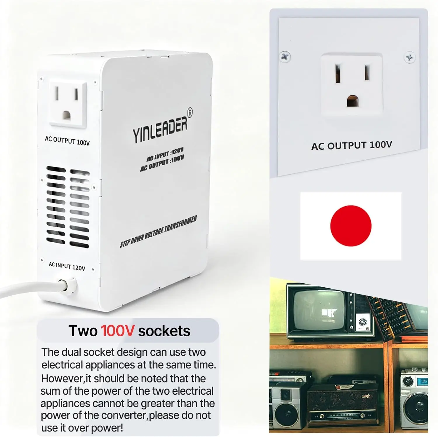 ·【Voltage transformer 120V to 100V】It converts 120V supply voltage in the U.S., Canada and Mexico to 100V for use in Japanese appliances;