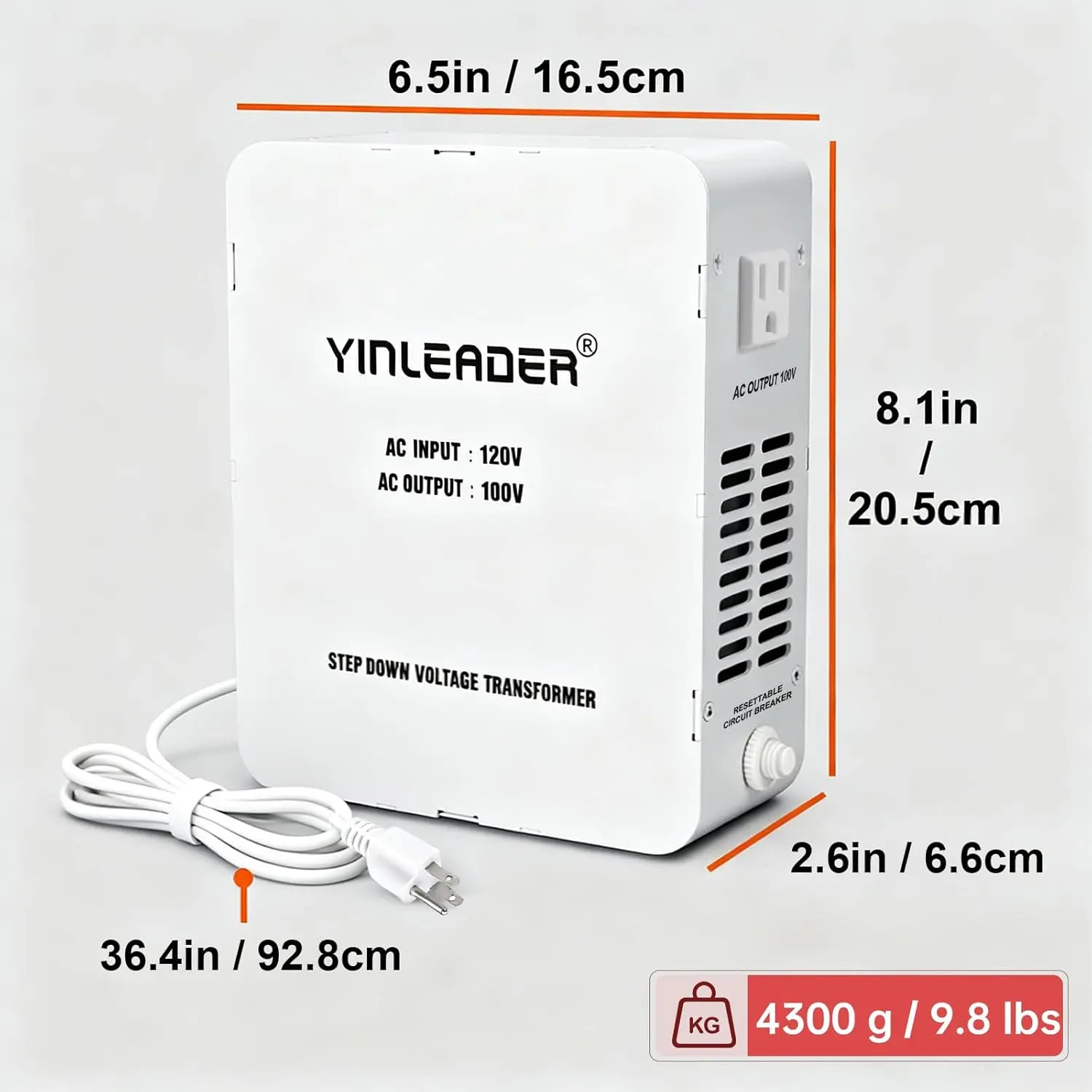 1500W US 120V to 100V JP Japan Voltage Converter Step Down Transformer Ideal for Japanese Electronic Devices(White)