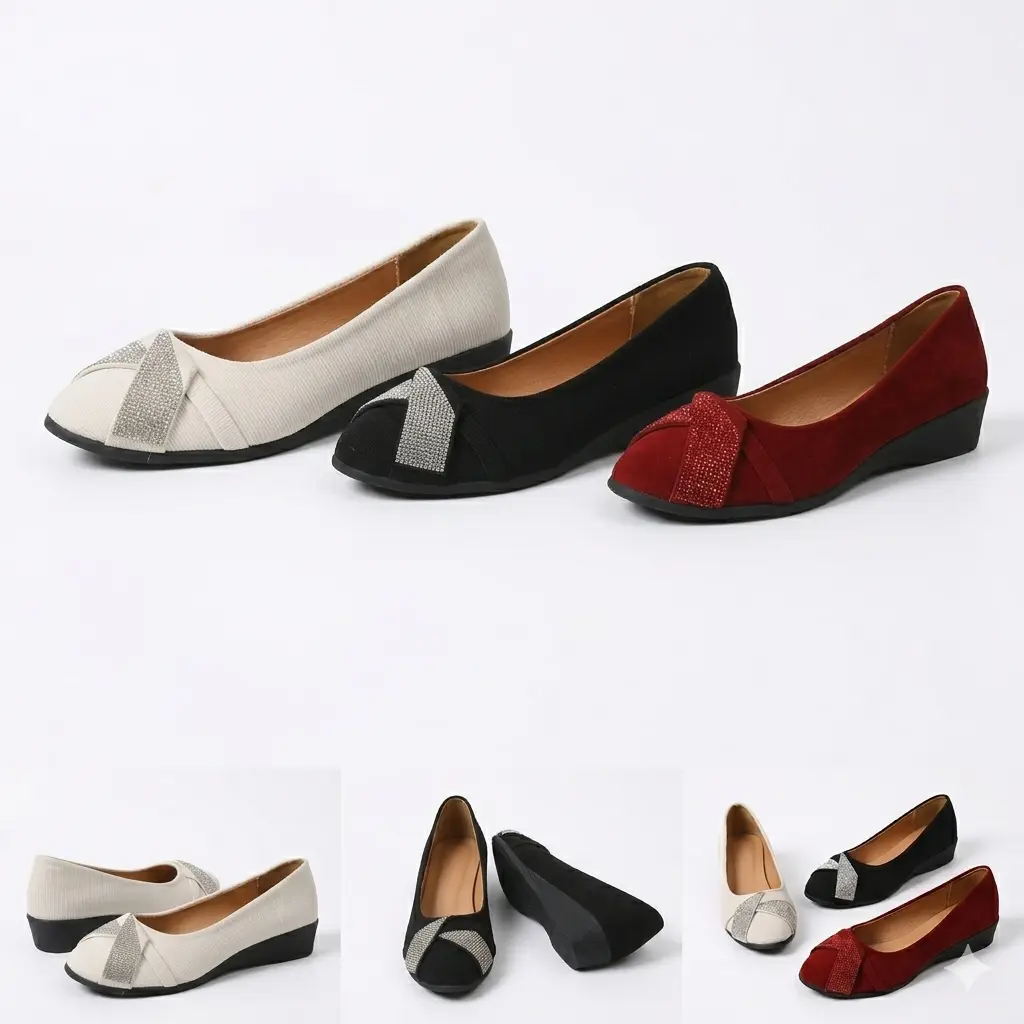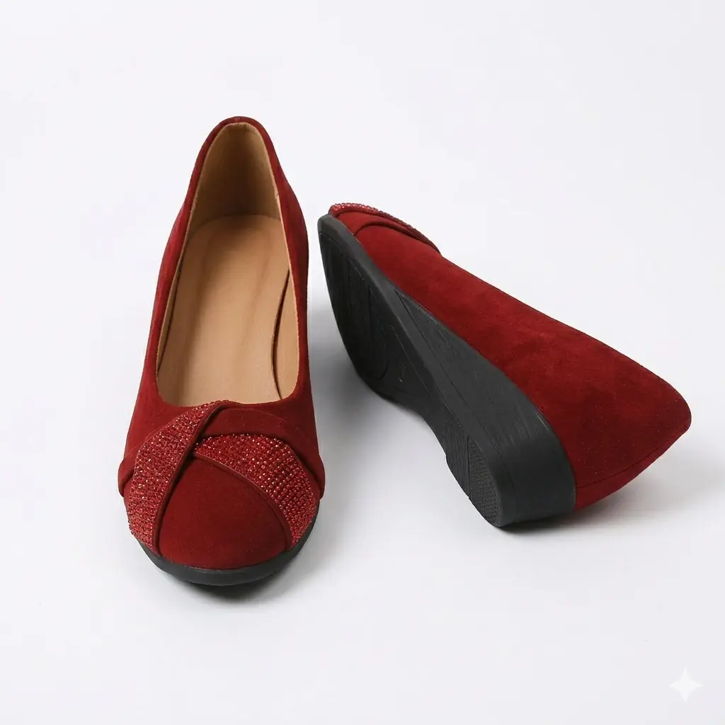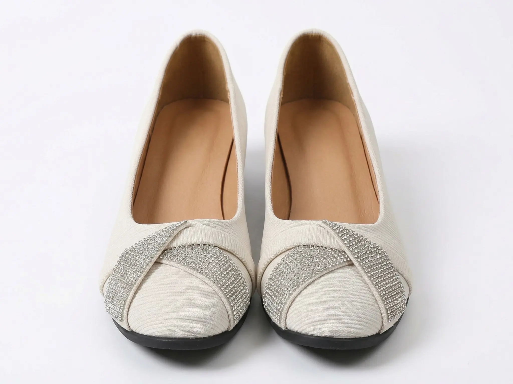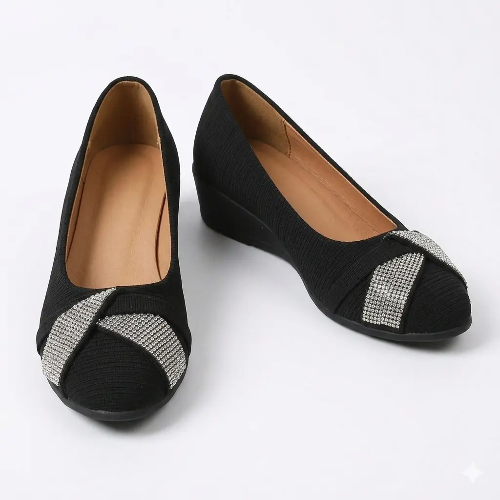 Dance All Night! Chic Rhinestone Crossover Wedges | Breathable Low Heel Pumps for Women