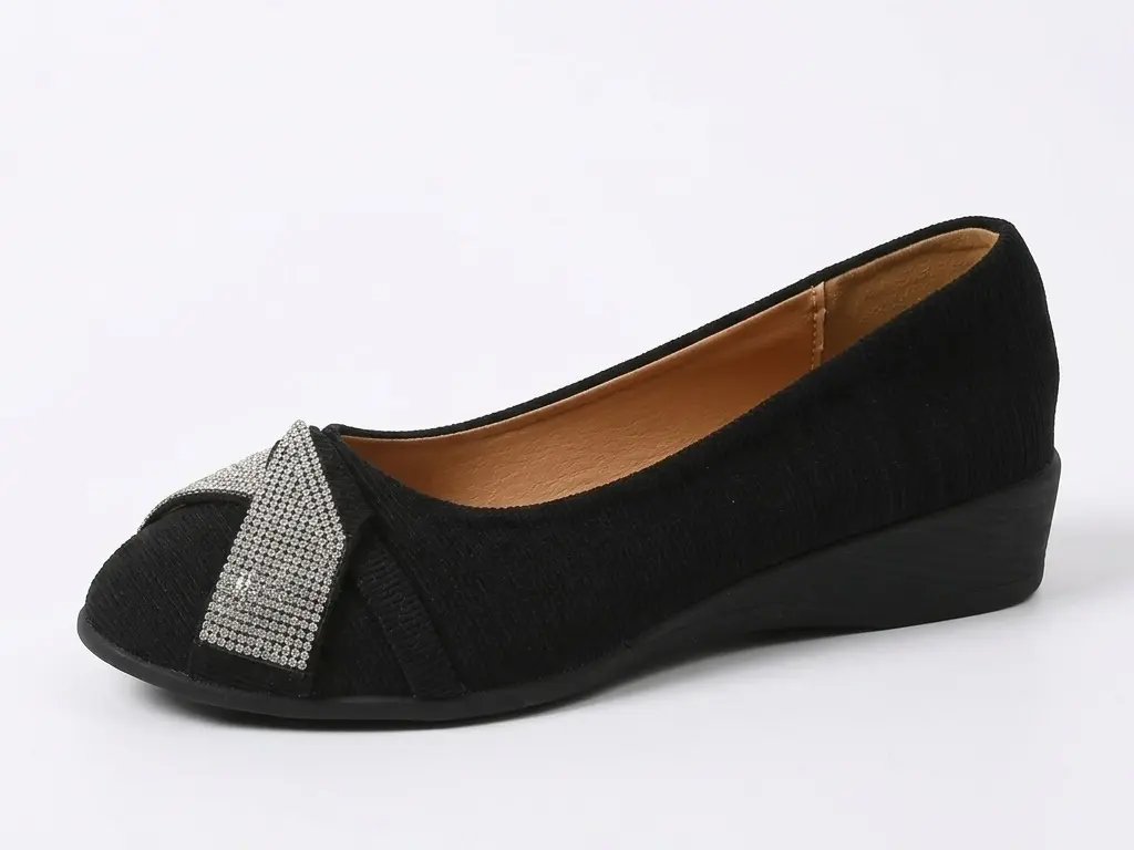 Dance All Night! Chic Rhinestone Crossover Wedges are the perfect choice for women who love to shine. These breathable low heel pumps feature a crossover design, adding a touch of elegance to any outfit. Ideal for evening events, they combine style with comfort.