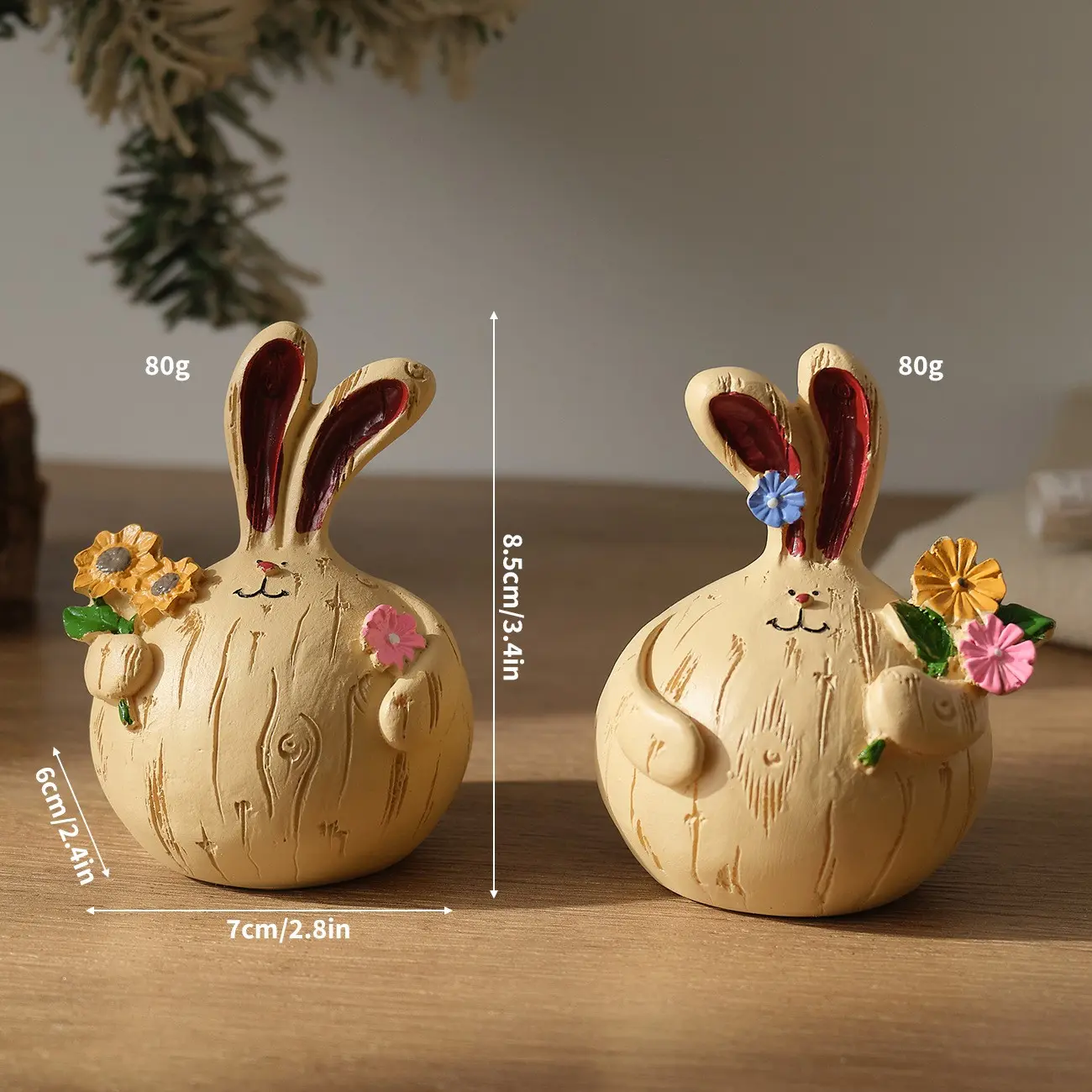 【Unique Design】: Featuring adorable rabbits holding flowers, these figurines stand out as unique decorative items.