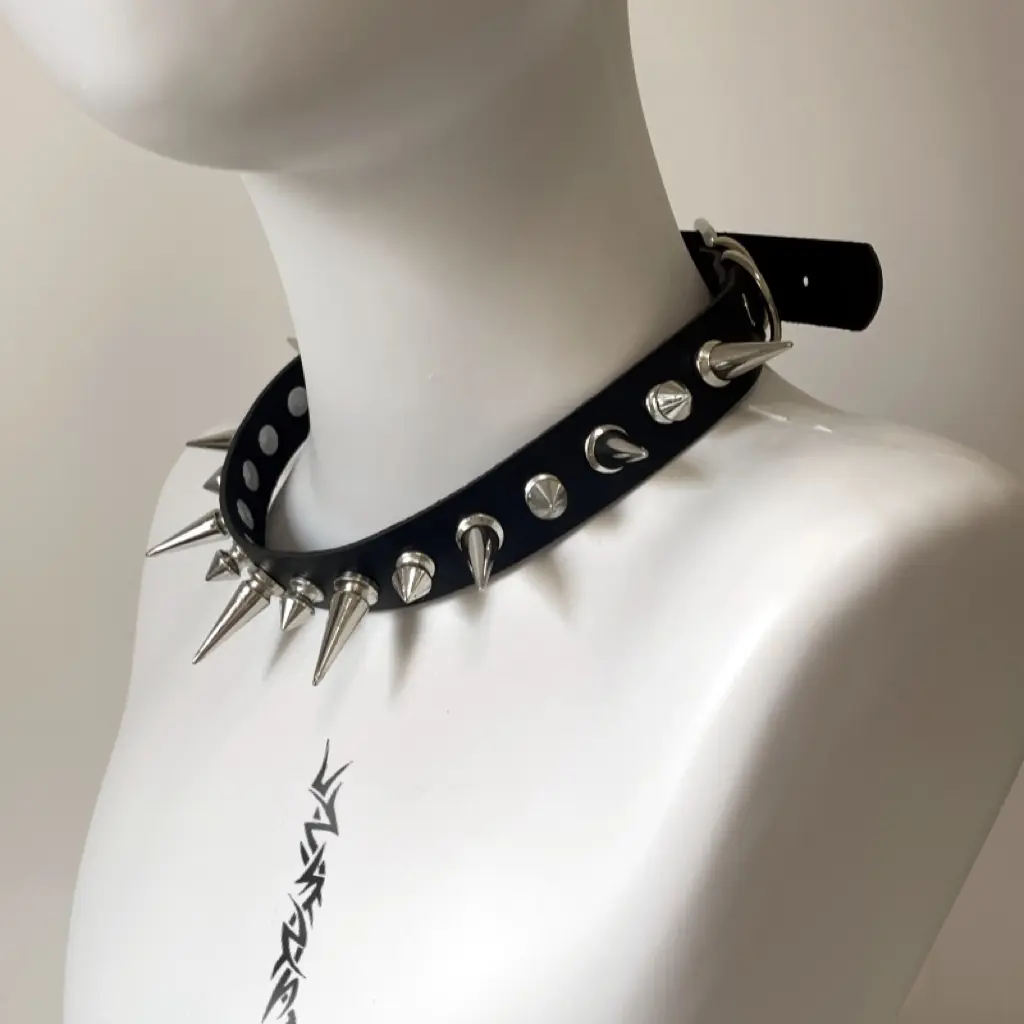 2pcs Women Punk Rivet Necklace Y2K Girl Harajuku Gothic Black Choker Necklace Spicy Girl Collarbone Chain Rock Neck Chain Jewelry
