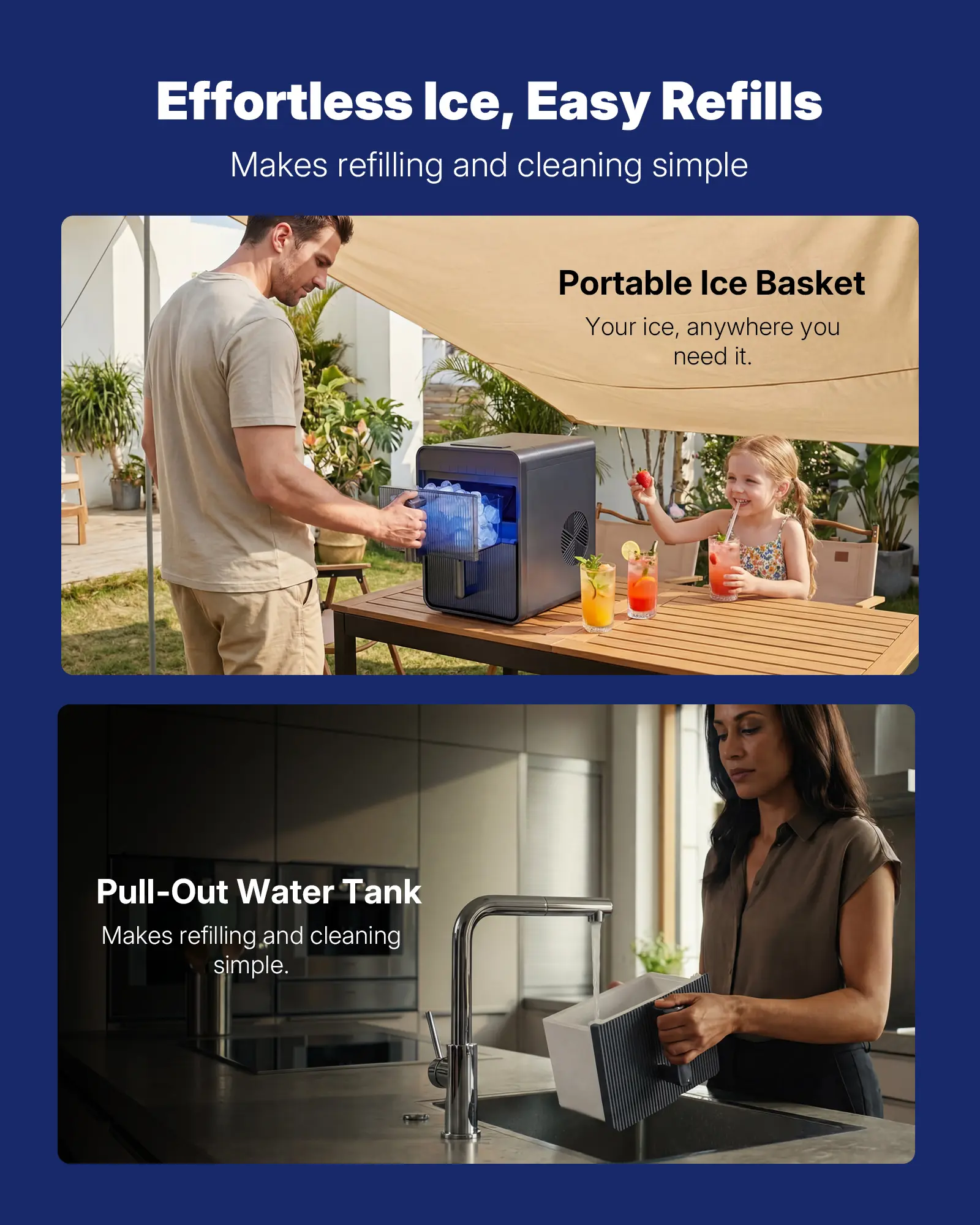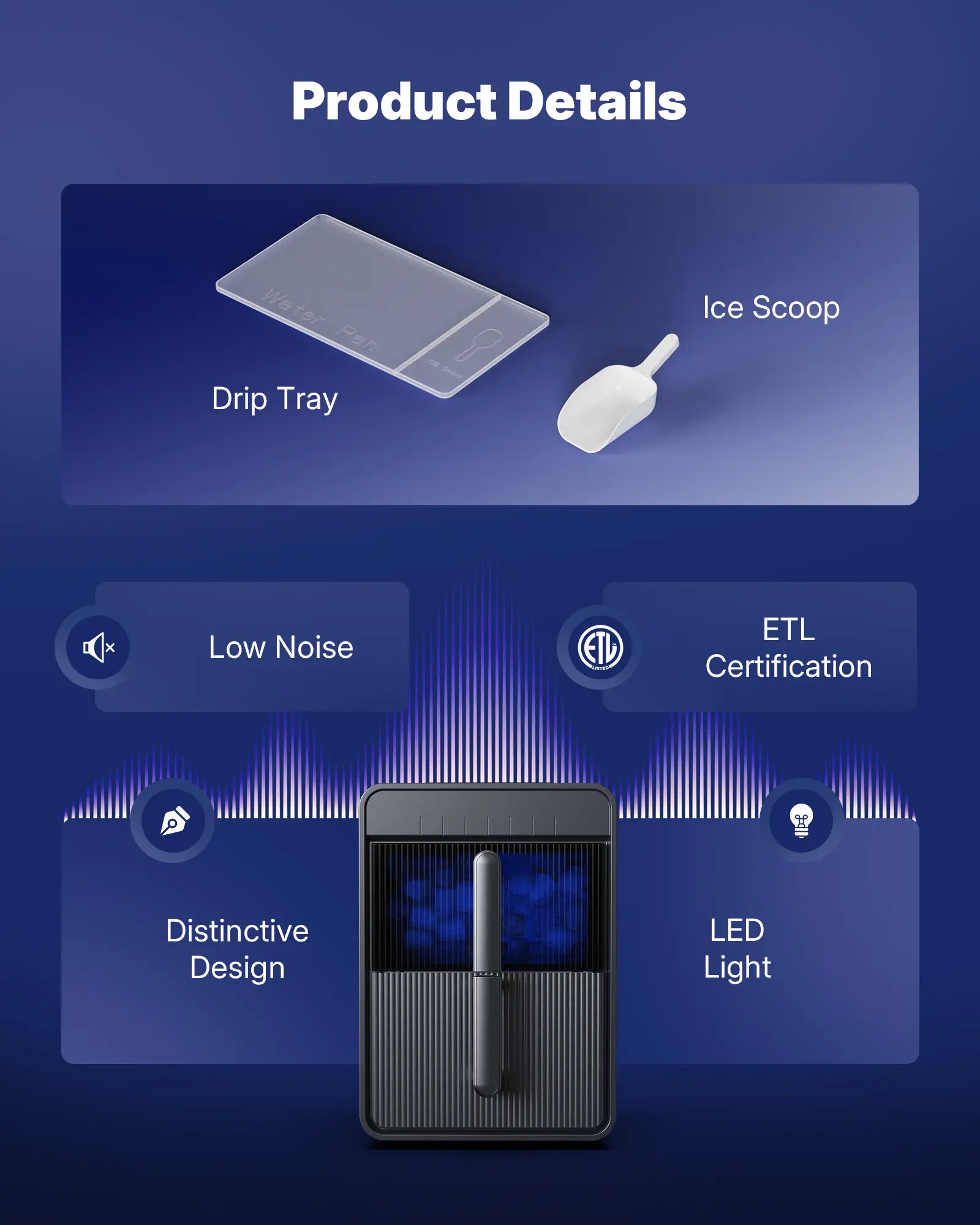 ·Insulated water tank & ice container: Two separate containers for easy refilling, cleaning, and hygiene. Ensures fresh, pure ice every time.