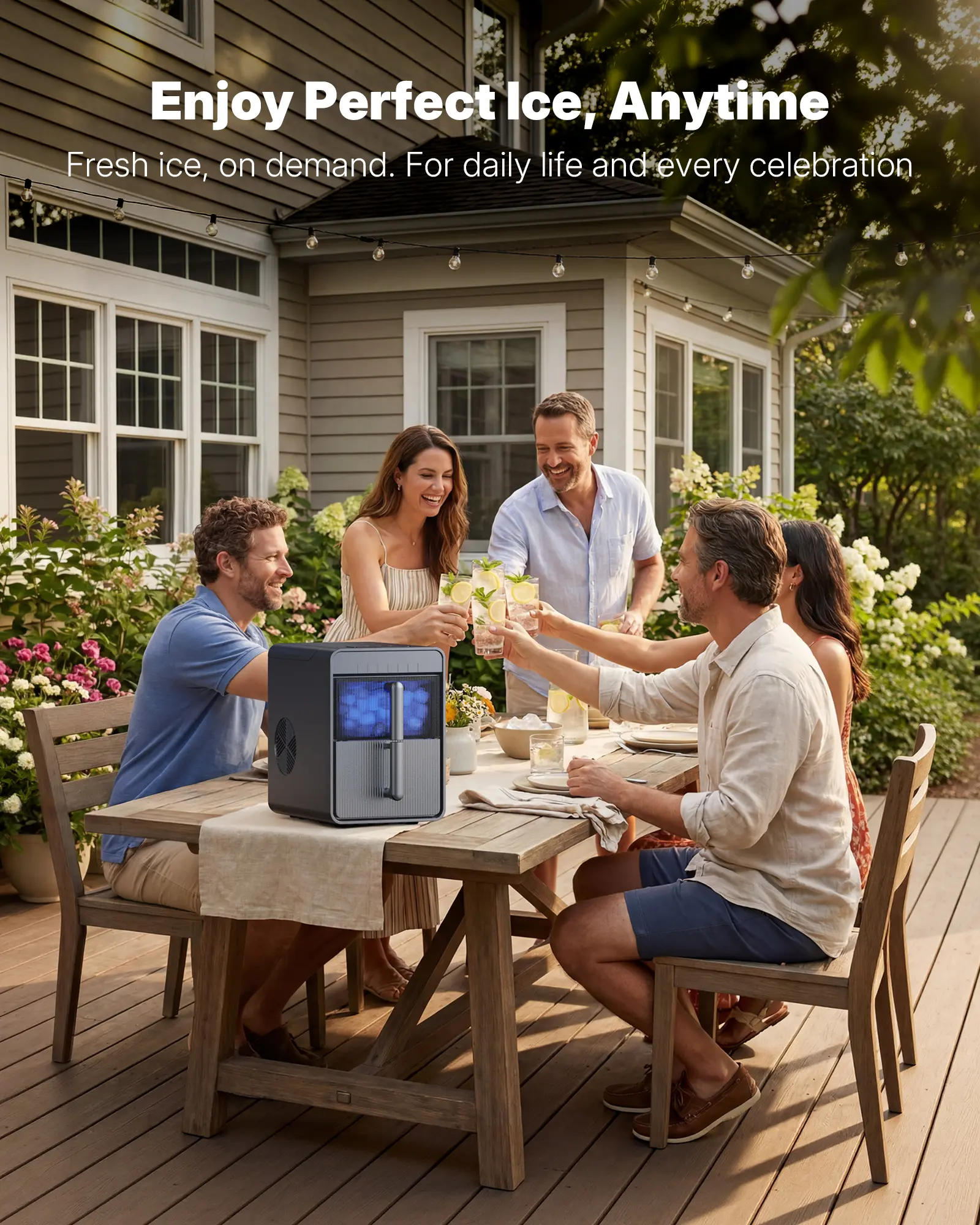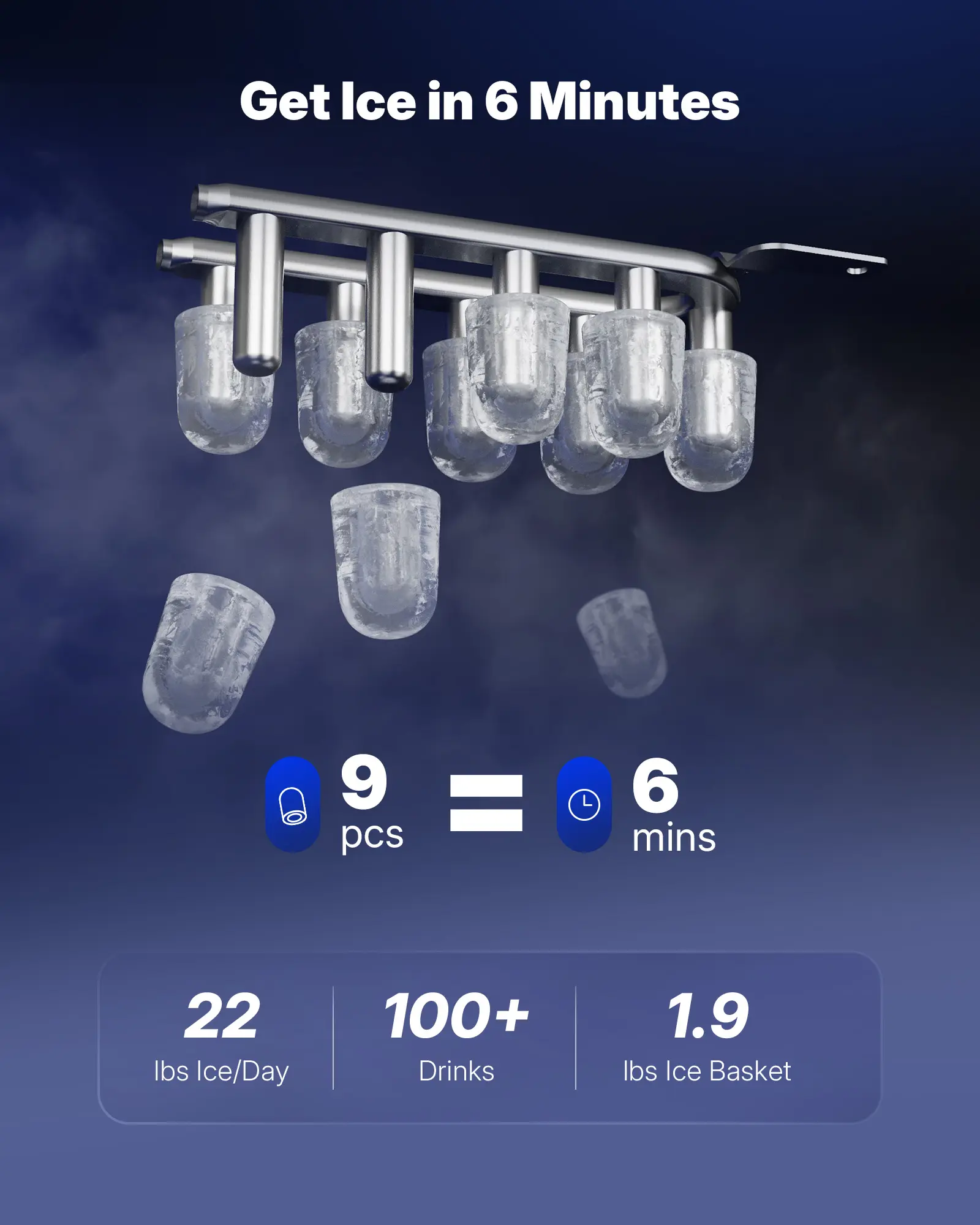 ·Fast ice in 6 minutes: Produces fresh ice in 6 minutes for parties, daily drinks, or instant cooling. (Tested at 10°C room/water temp; actual time may vary)