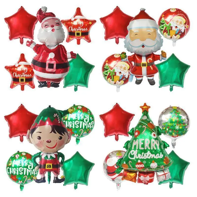 5pcs Merry Christmas Balloons Decoration Cute Snowman Santa Xmas Tree Balloon For New Year 2025 Home Ornaments Globos Noel Gifts