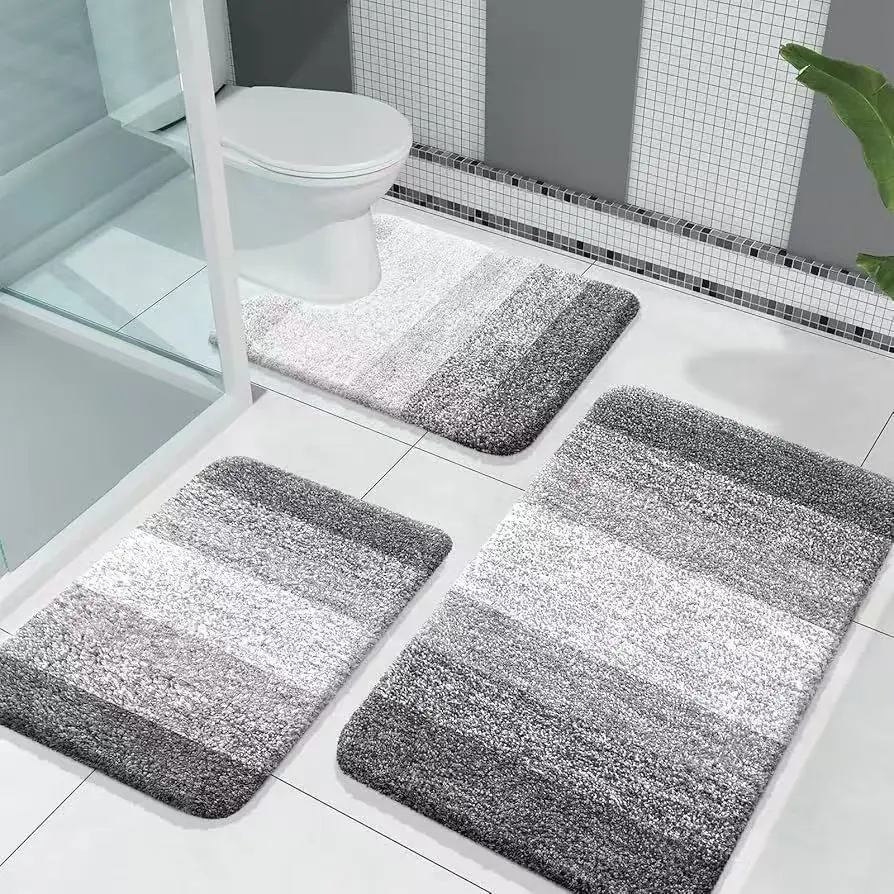 3PCS Soft Gradient Cashmere-like Bathroom Mat Set, Ultra-fine Fiber Super Water Absorbent Shower Rug, Non-slip U-Shaped Toilet Mat, Quick Dry Machine Washable