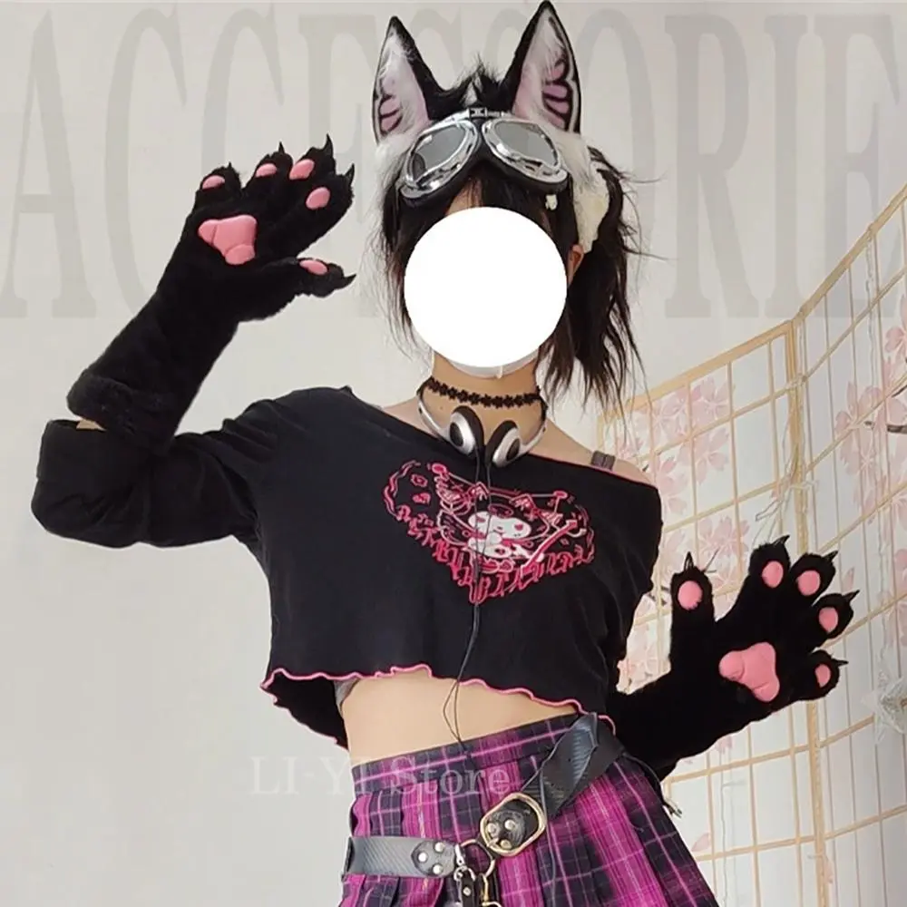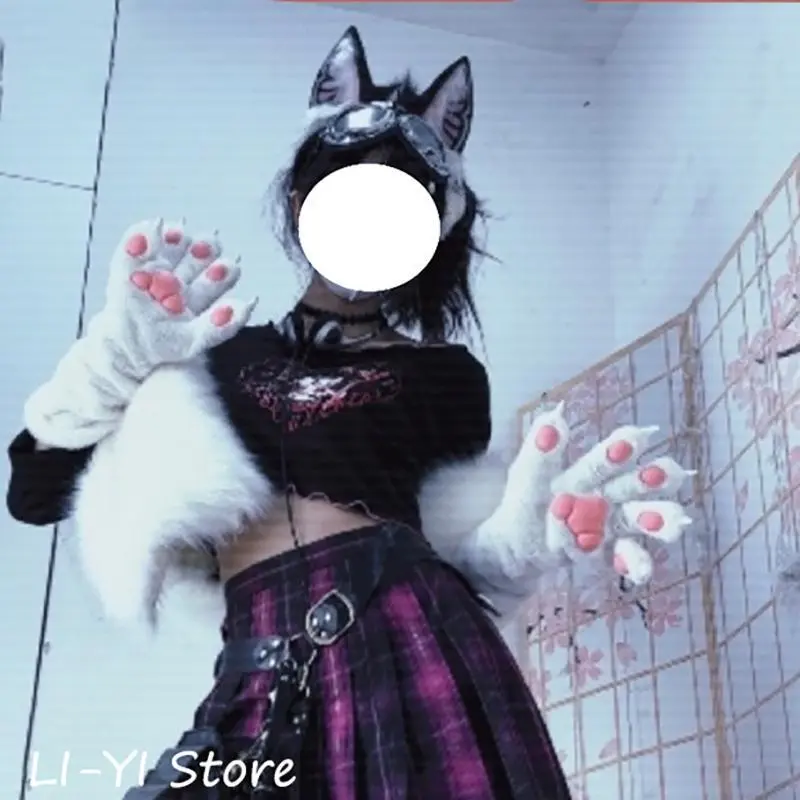 6 Colors Girls Women Cat Paws Gloves Anime Plush Cosplay Accessories Comic-con Stage Show Party Fursuit Mittens Furry Kig Claw