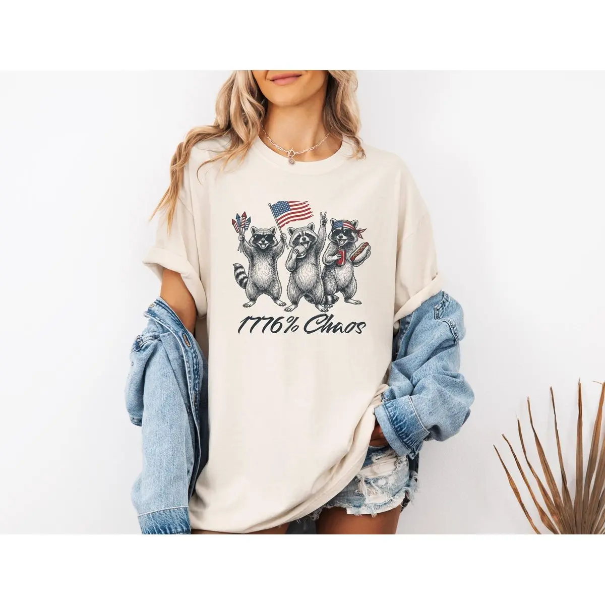 Patriotic raccoon 1776% chaos shirt, usa flag sweatshirt, 250th anniversary shirt, patriotic american hoodie, unisex sweater pullover tee