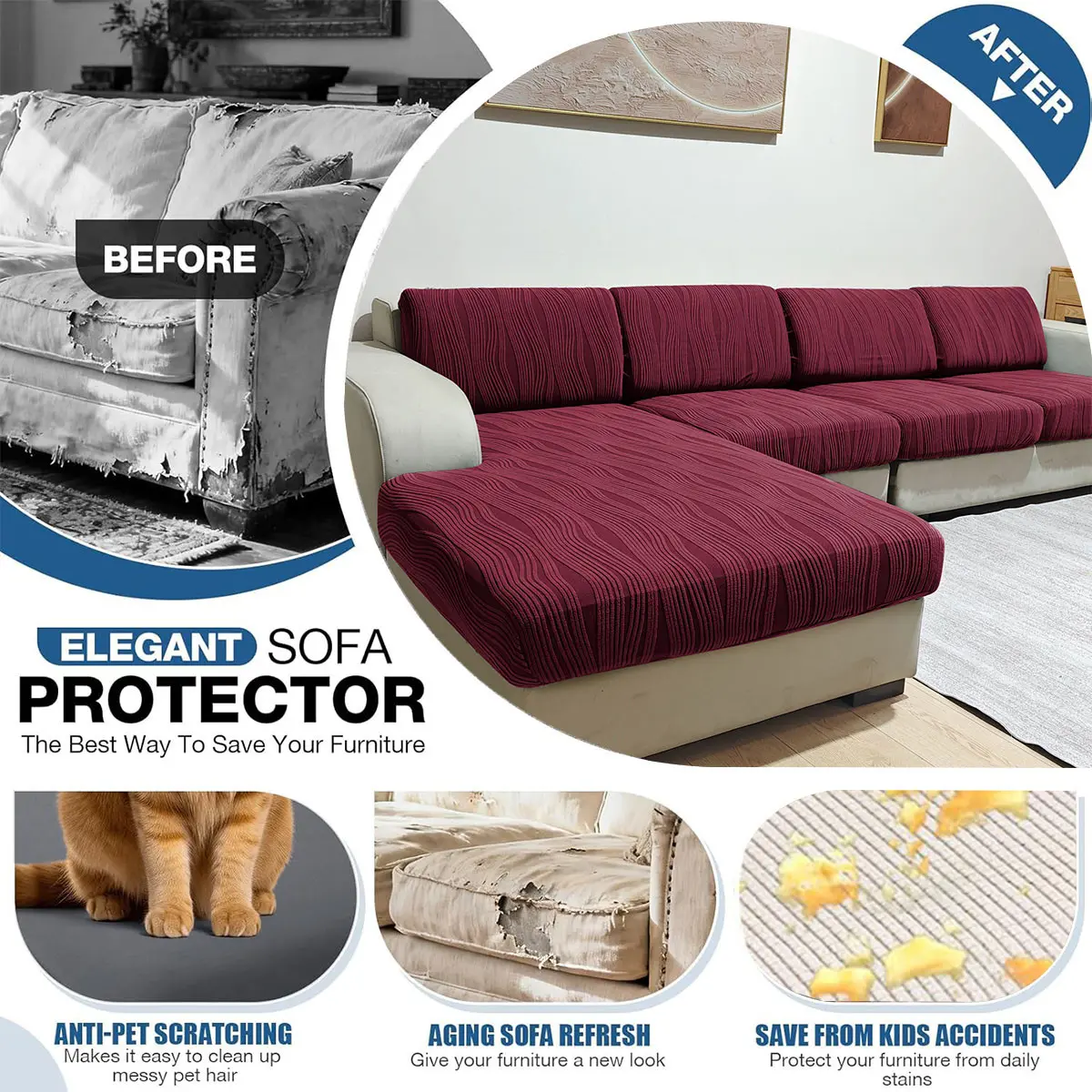 Leaf Elastic Print Sofa Cushion Covers, Single Seat 4/8 Piece Set, Washable Furniture Protector, Home Decor & Pet Friendly