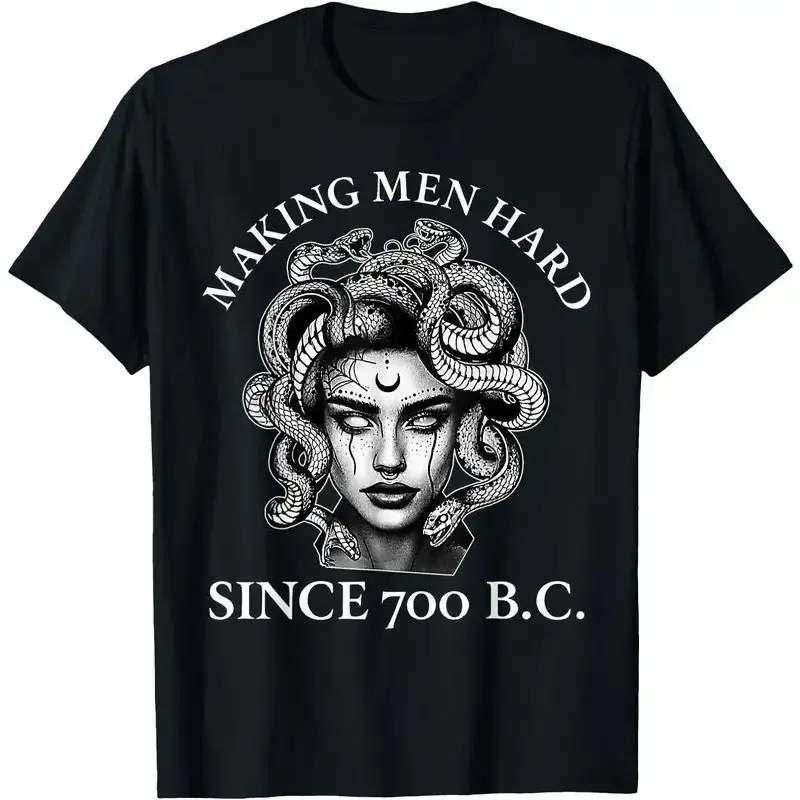 [Title: Making Men Hard Since 700 B.C Funny Feminist Medusa Ancient T-Shirt, Type: Novelty Graphic T-Shirt, Design: Funny tshirt with a feminist Medusa ancient theme, Usage: Ideal for casual streetwear, Material: Made from cotton, Features: Moisture-wicking, short sleeve, crew neck]