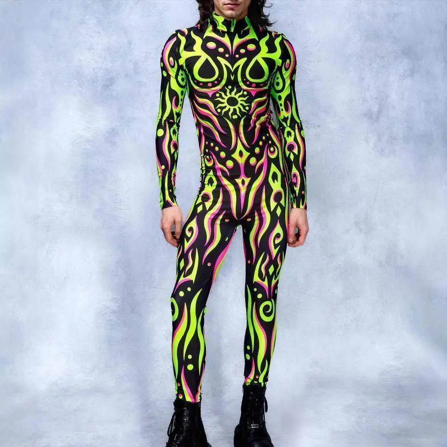 Halloween Party Performance Costumes 3D Printed Tights Jumpsuit for Men Anime Cosplay Clothing Party Carnival Festival Outfit