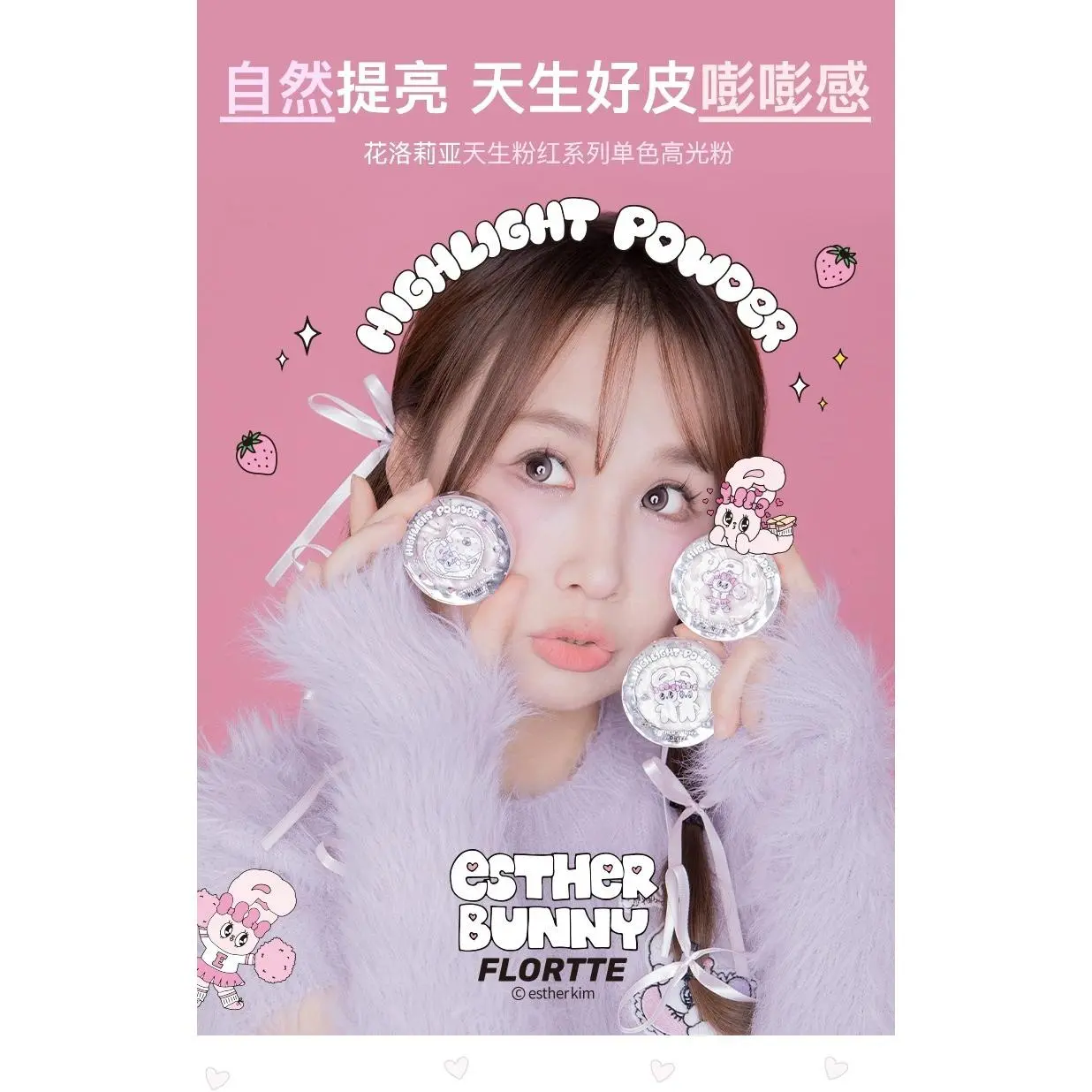 FLORTTE Esther Bunny Single-Colour Highlighter Powder Matte Brighten Contour Palette Face Makeup Cosmetics