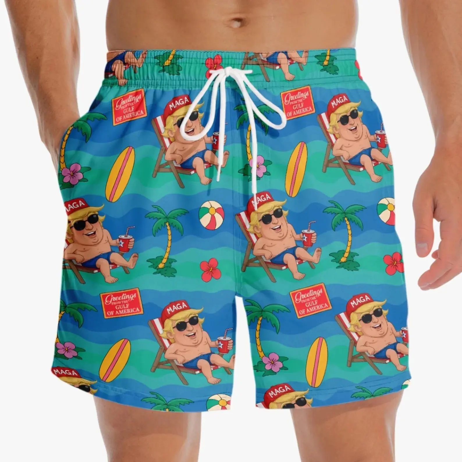 5. Flip Flops, Palm Trees, Liberty Breeze US Patriotic Pride Tropical Hawaiian Aloha Men Beach Shorts, Gift For Men, Dad, Grandpa, Summer Gift