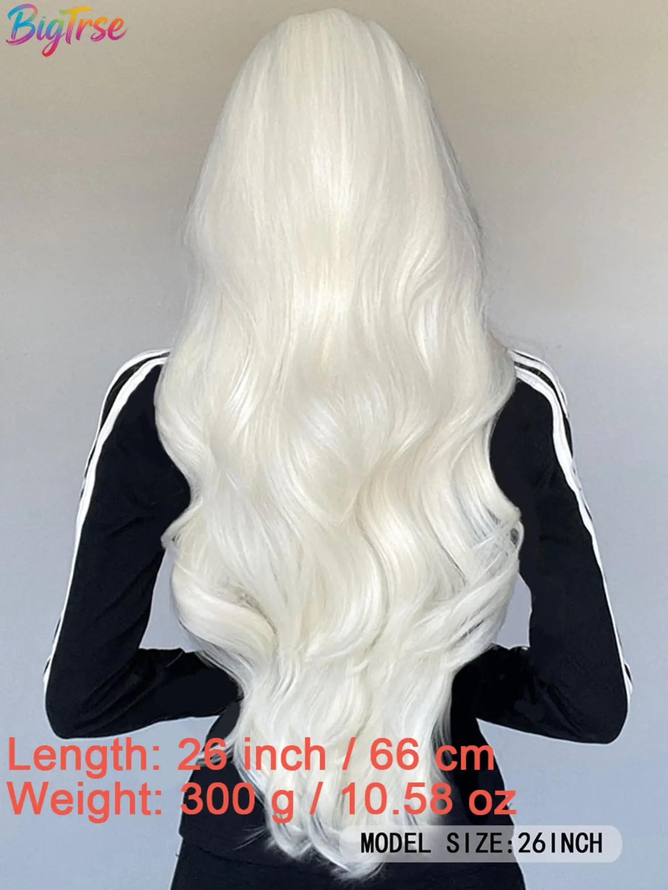 Bigtrse Women's 26-Inch Wavy Synthetic Wig, Platinum, Heat-Resistant Fiber, Natural Hairline, Perfect for Halloween, Parties, Daily Wear