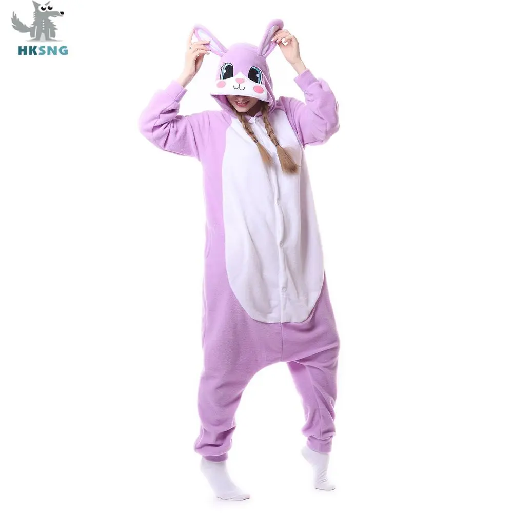HKSNG Adult Animal Cute Purple Pink Bunny Rabbit Pajamas Cartoon Onesies Halloween Costumes Jumpsuits Christmas Gift Kigurumi