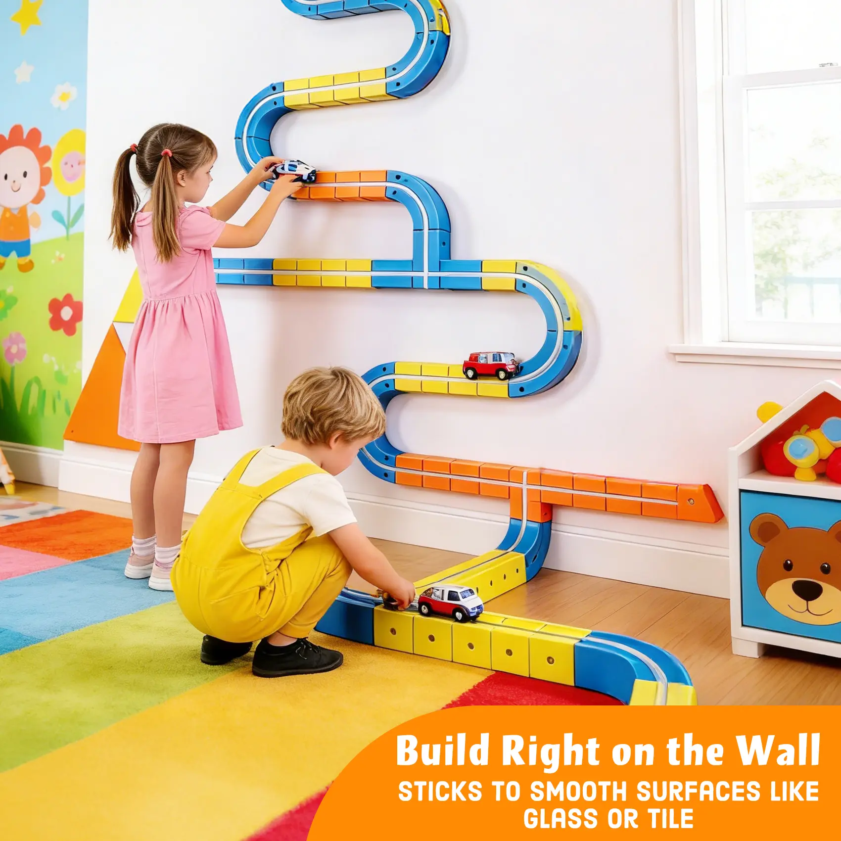 ·【Magnetic Modular 3D Train Tracks】Colorful magnetic cubes snap together securely, letting kids build flexible 3D train tracks with climbs, curves, bridges, and vertical layouts. Easy to connect, sturdy to play, and endlessly rebuildable.