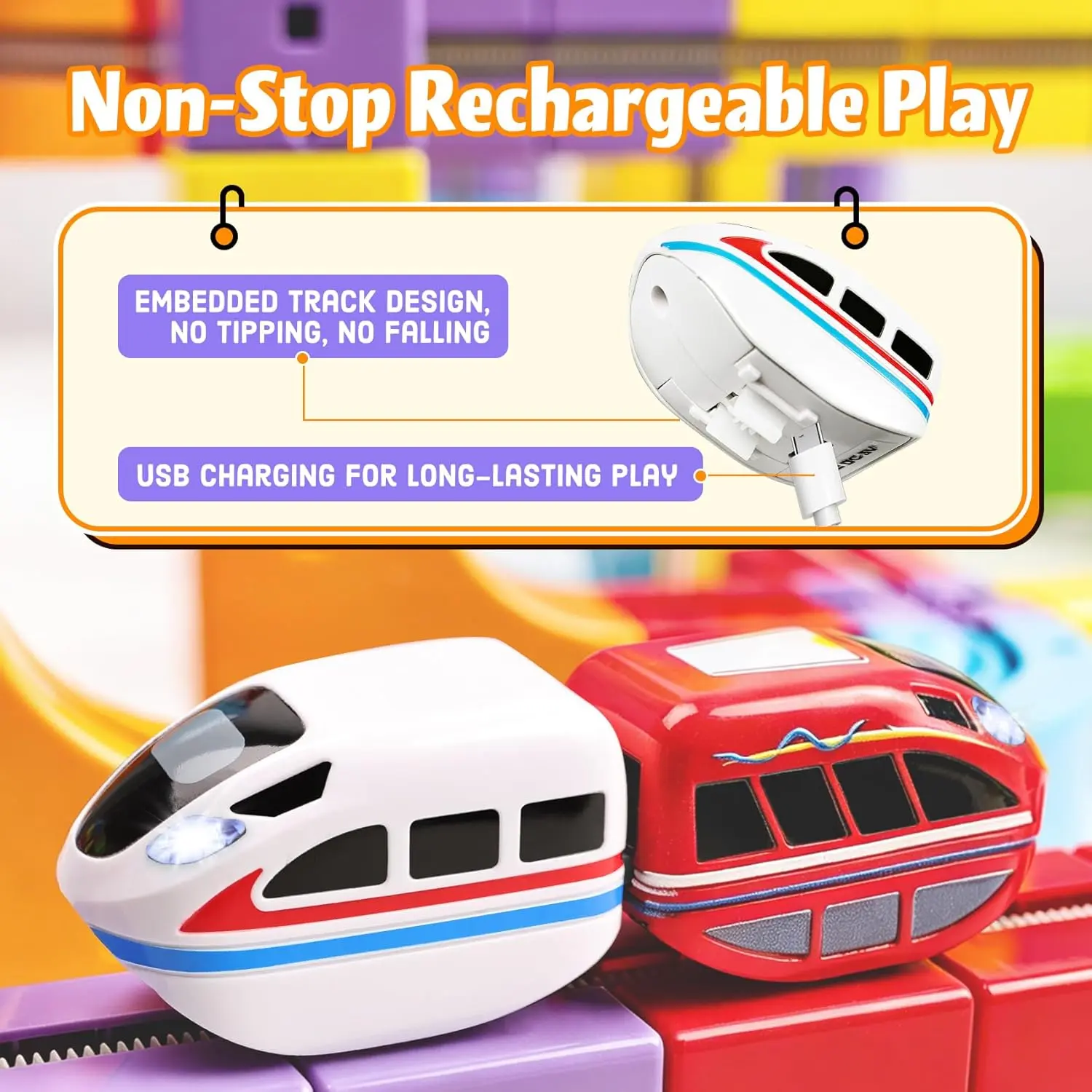 ·【Safe, Durable & Easy Assembly】Designed as an electric train set for kids, made from BPA-free materials with smooth edges and strong magnetic connections for safe, stable, and frustration-free play.