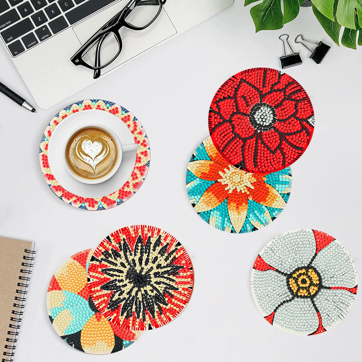The 8 PCS Diamond Art Coasters Kit is a fun and easy-to-use craft kit for adults. It includes all necessary accessories and provides extra diamonds for added creativity. Perfect for gifting or personal enjoyment, this kit offers a wide range of designs and is suitable for both beginners and experienced crafters.