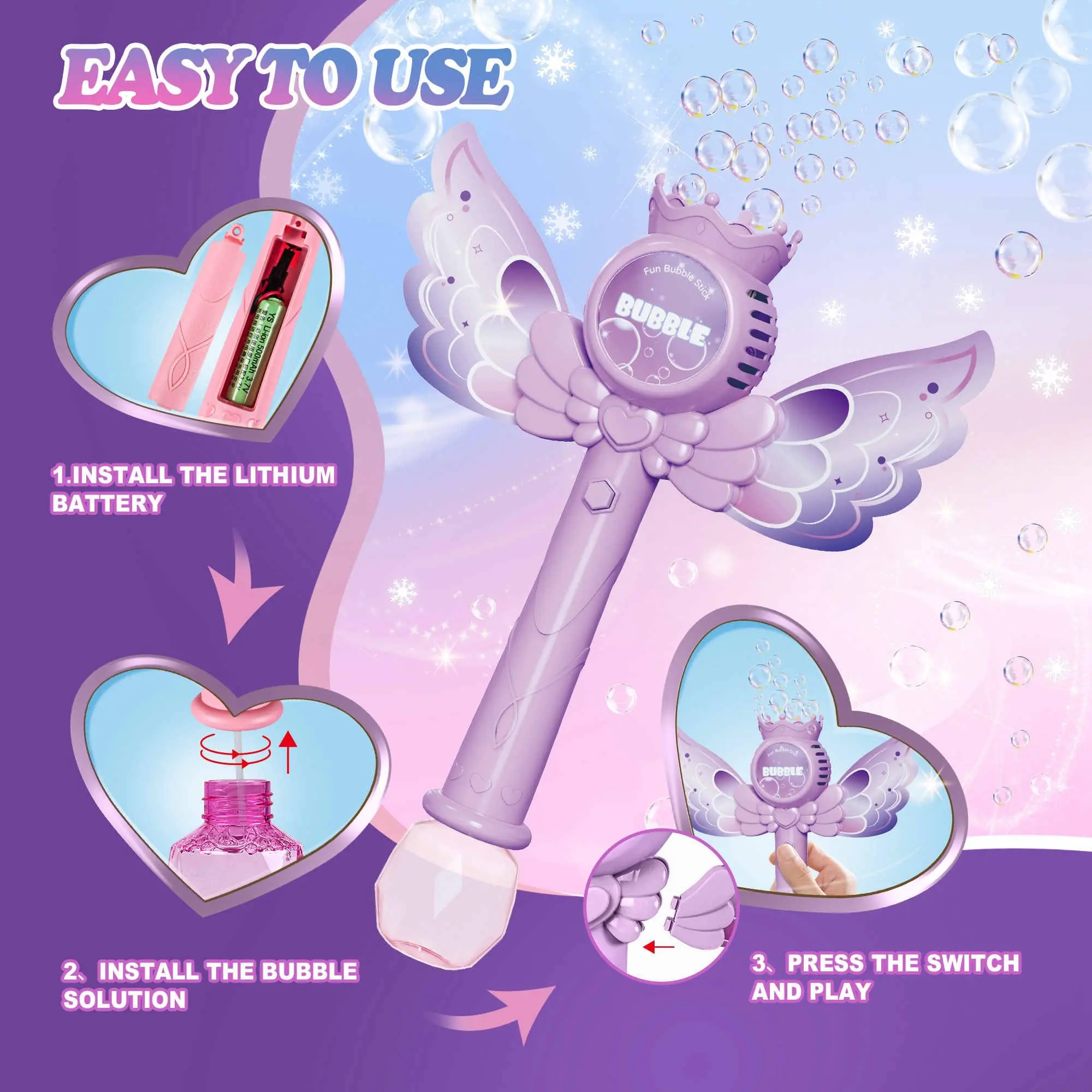 ✨ 3-Pack Automatic Bubble Wands for girls, designed for endless fun. These princess bubble machines are perfect for summer activities, both indoors and outdoors. Ideal for Easter, birthdays, weddings, and parties. Kids will love creating magical bubbles with these wands.