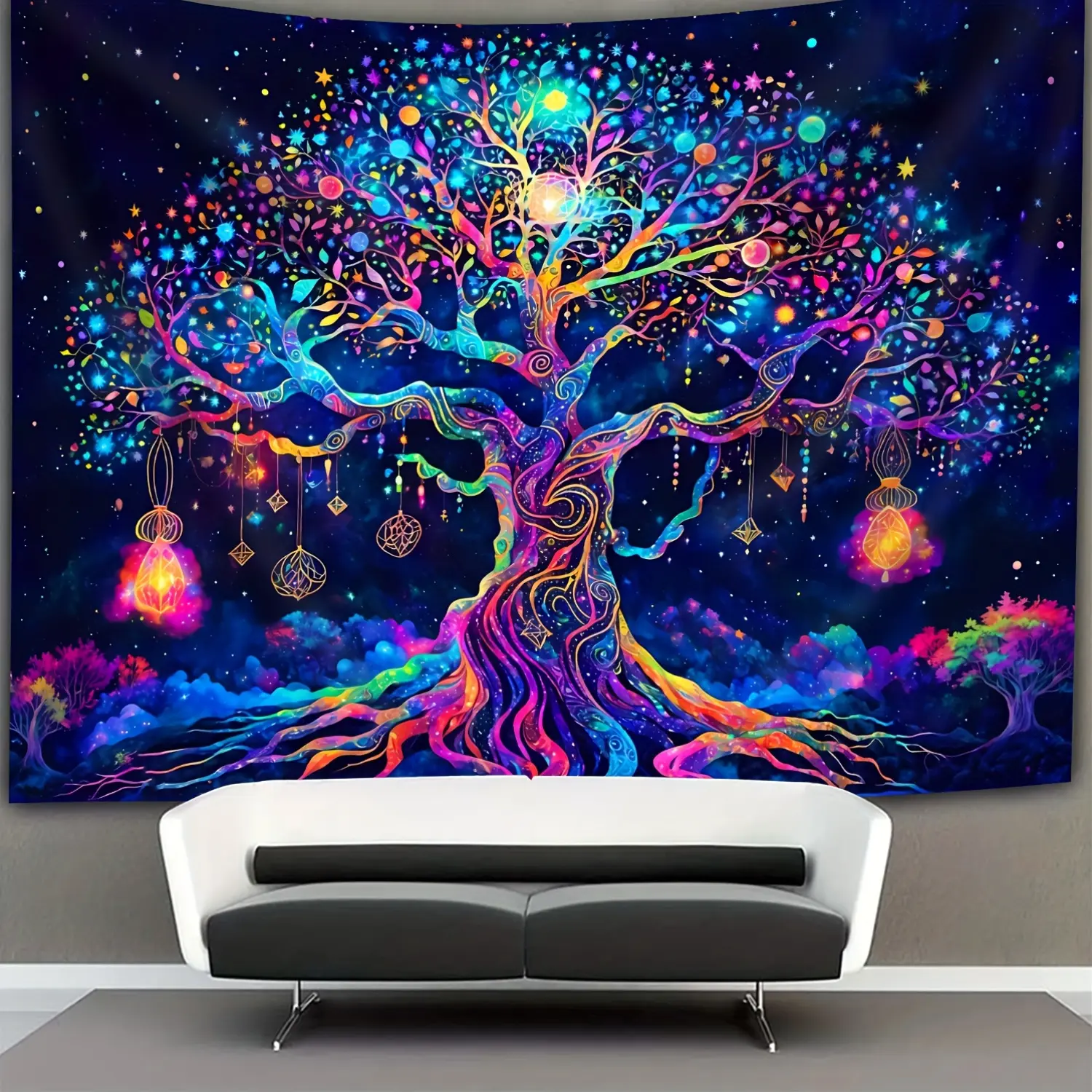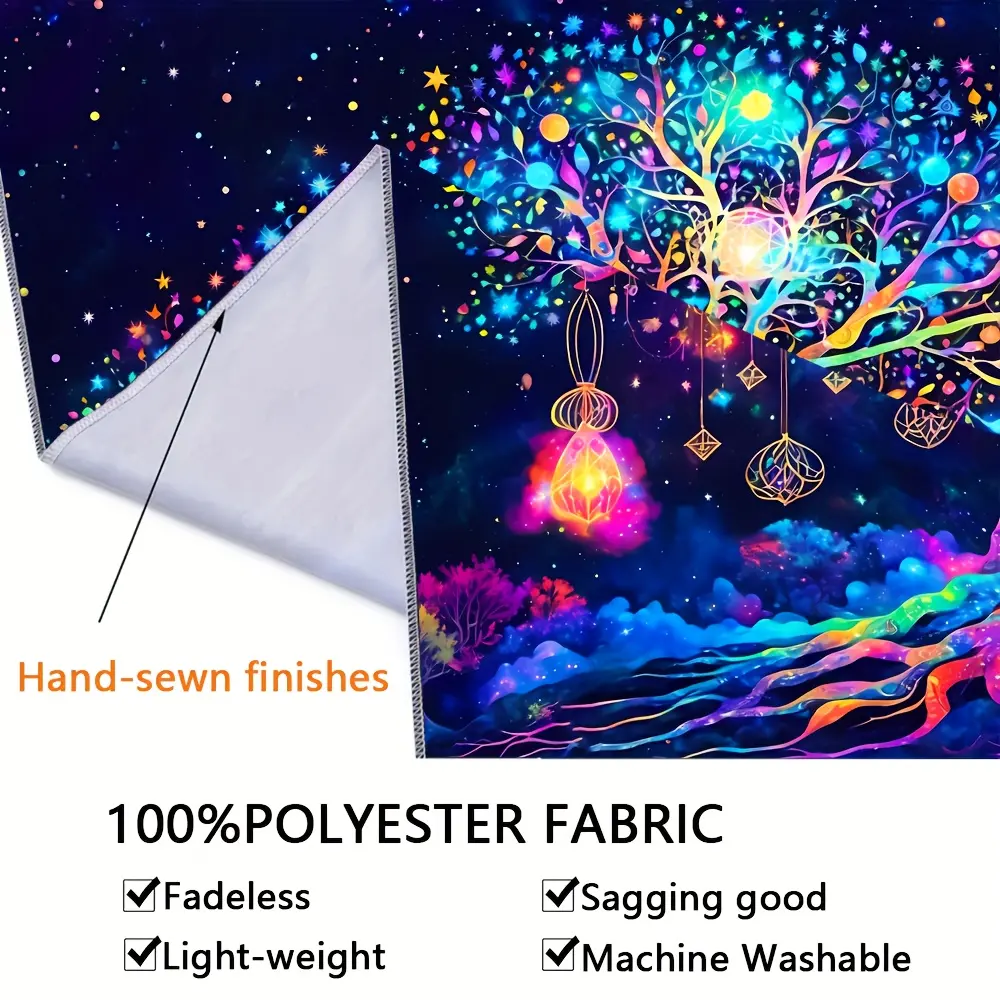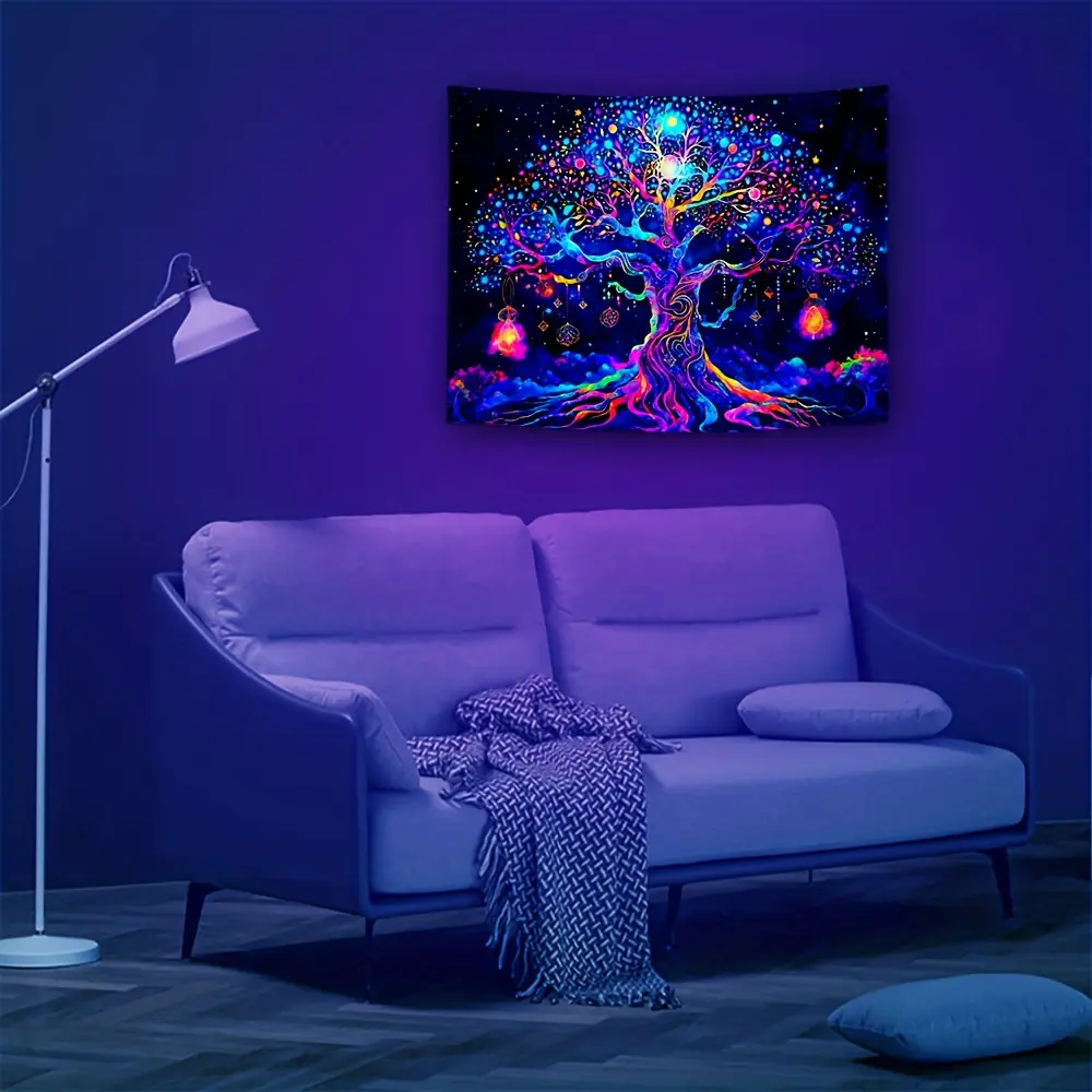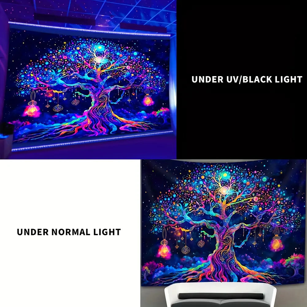 1pc Fantasy Tree Of Life UV Black Light Tapestry, Large Size Fluorescent Tapestry, Bedroom Aesthetic For Bedroom Office Living Room Home Decor, With Free Accessories, Tapestry Wall Mural