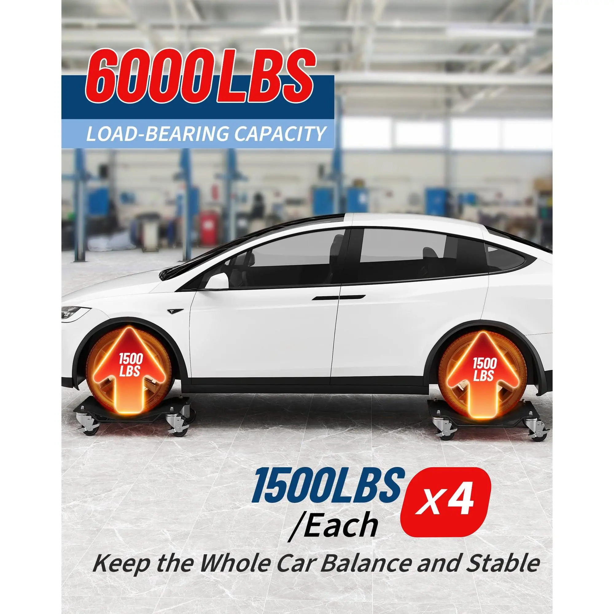 ·1.Heavy-Duty Steel Construction: Built with thickened, high-strength steel platforms and robust iron, our wheel dollies handle up to 1,500 lbs each (6,000 lbs per set), making moving cars, SUVs, and trucks safe and easy.