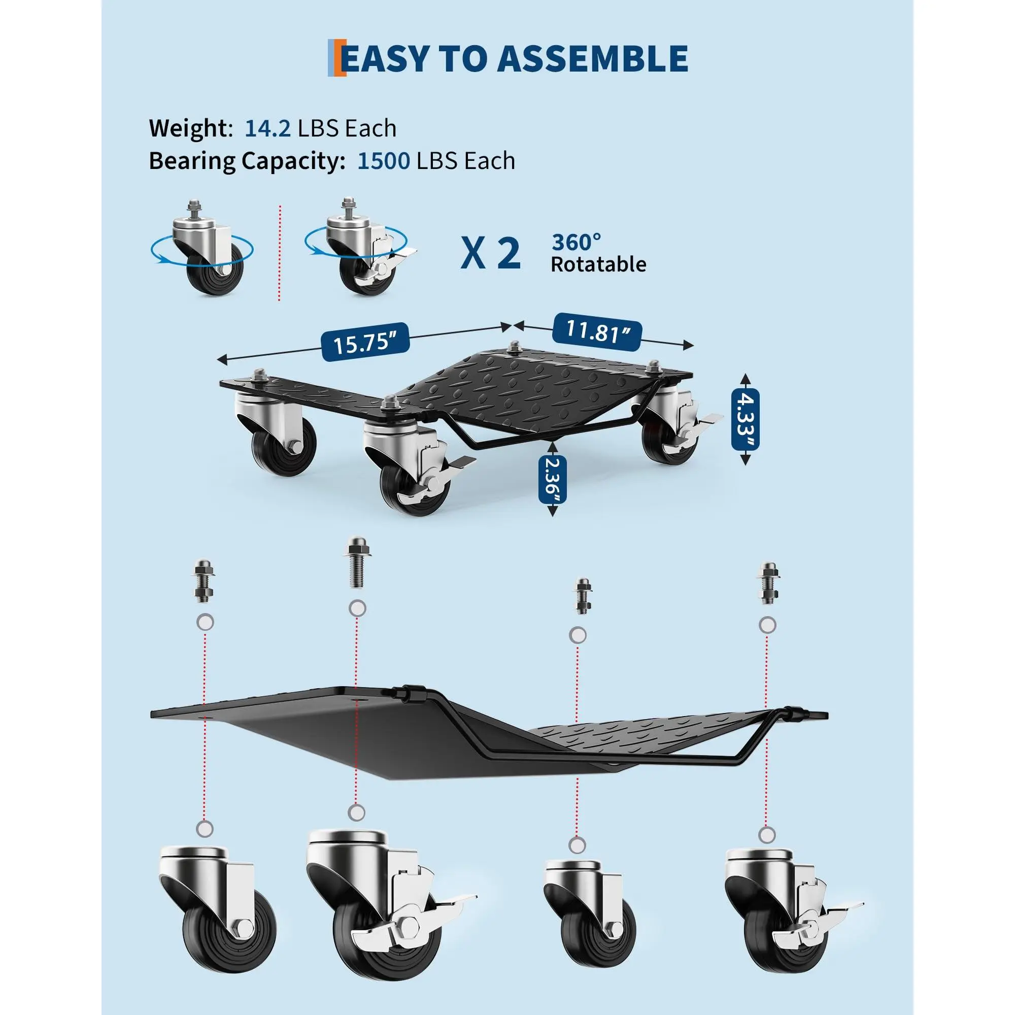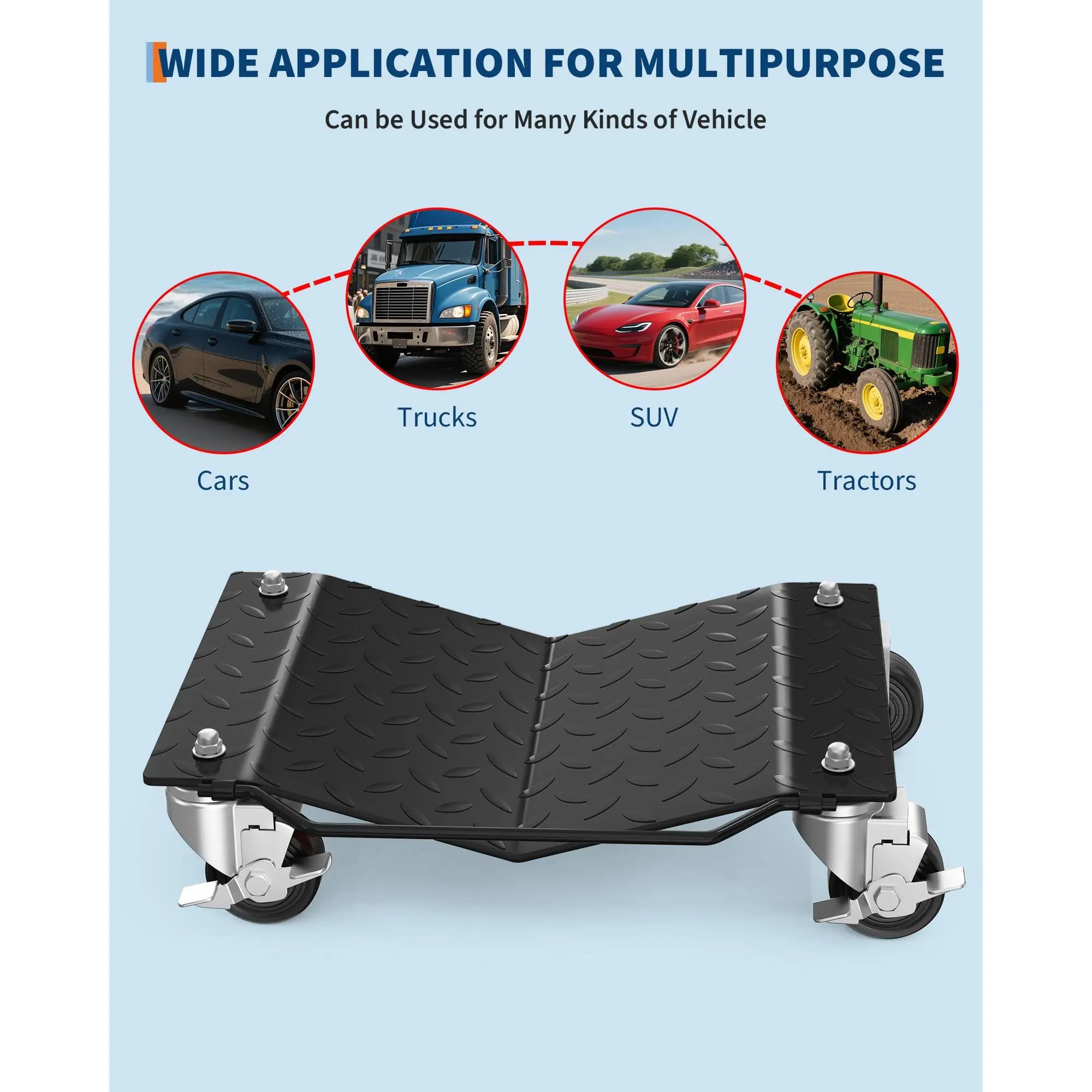 ·5.Versatile Application: Perfect for automotive repair shops, garages, showrooms, and restoration projects, these car dollies move vehicles, trailers, ATVs, motorcycles, and even furniture with comfort.