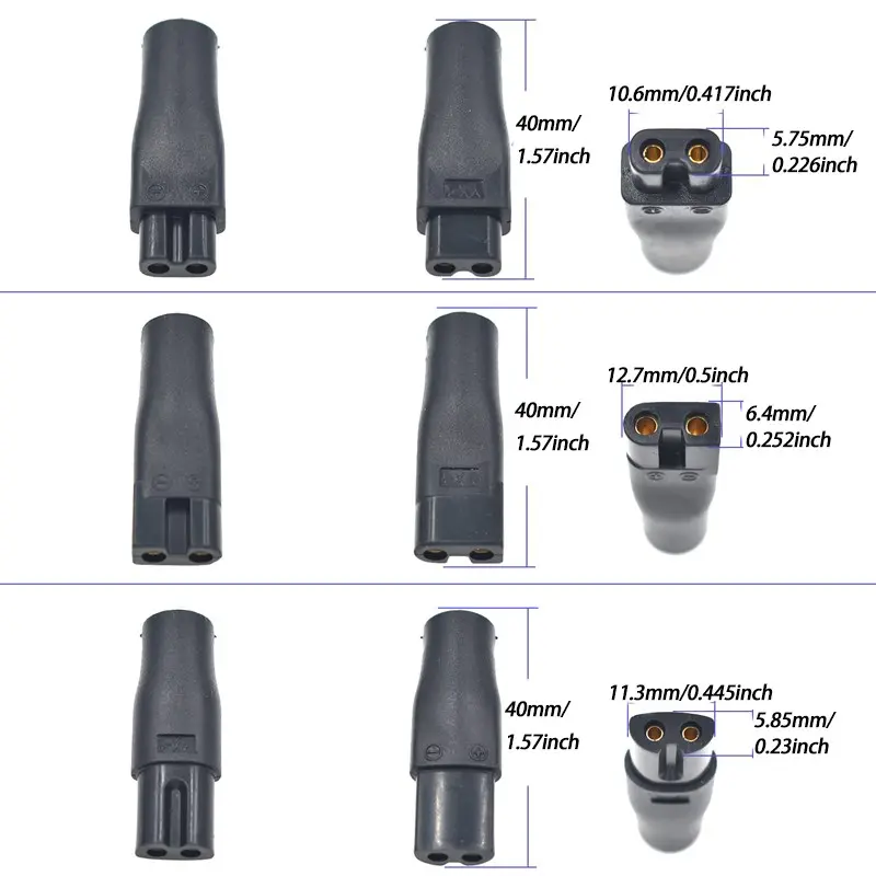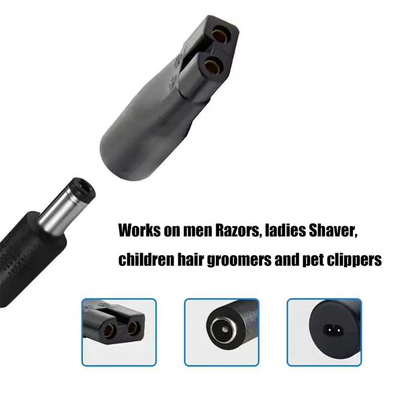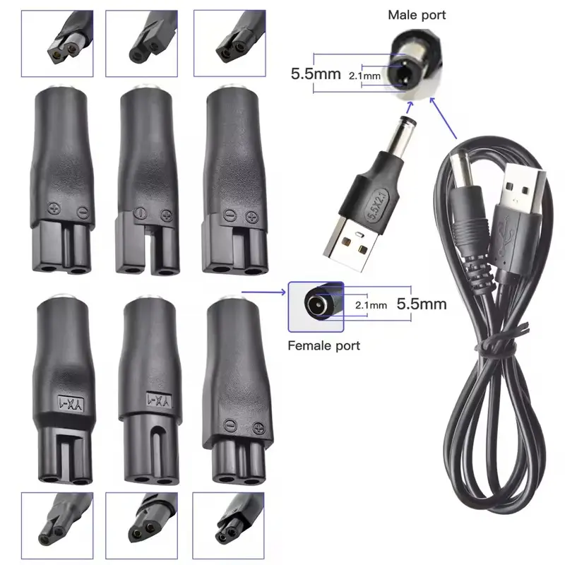8-piece set: 6 charging heads of different shapes are suitable for various electric clipper interfaces, DC 5V USB to 5.5x2.1mm Charging Cable *1