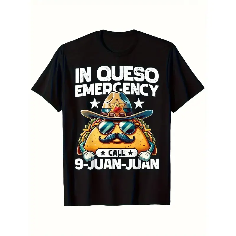 5. Men's Plus Size Funny Mexican-Themed T-Shirt - In Queso Emergency Nacho Design with Spanish Text & Taco Sheriff Badge - Cinco de Mayo Party Costume or Casual Wear - 100% Cotton Relaxed Fit Cheese Costume Gift for Men & Women (Black), PLUS SIZE