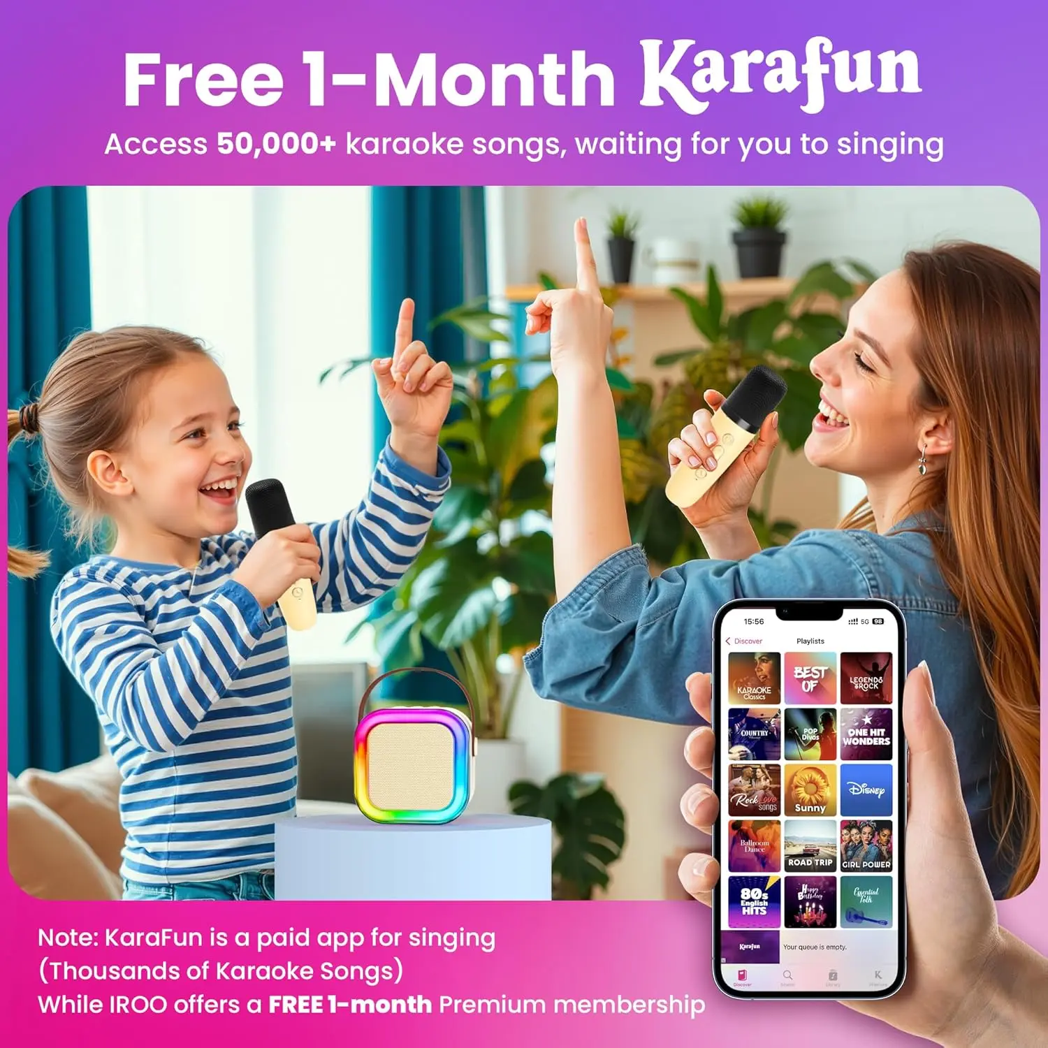 ·More Fun, Less Fights with Dual Mics: Say goodbye to sibling squabbles! Our mini karaoke machine for kids comes with two wireless microphones so children can sing duets and share the stage. This kids karaoke machine encourages teamwork, creativity, and fun memories for girls and boys aged 3–12.
