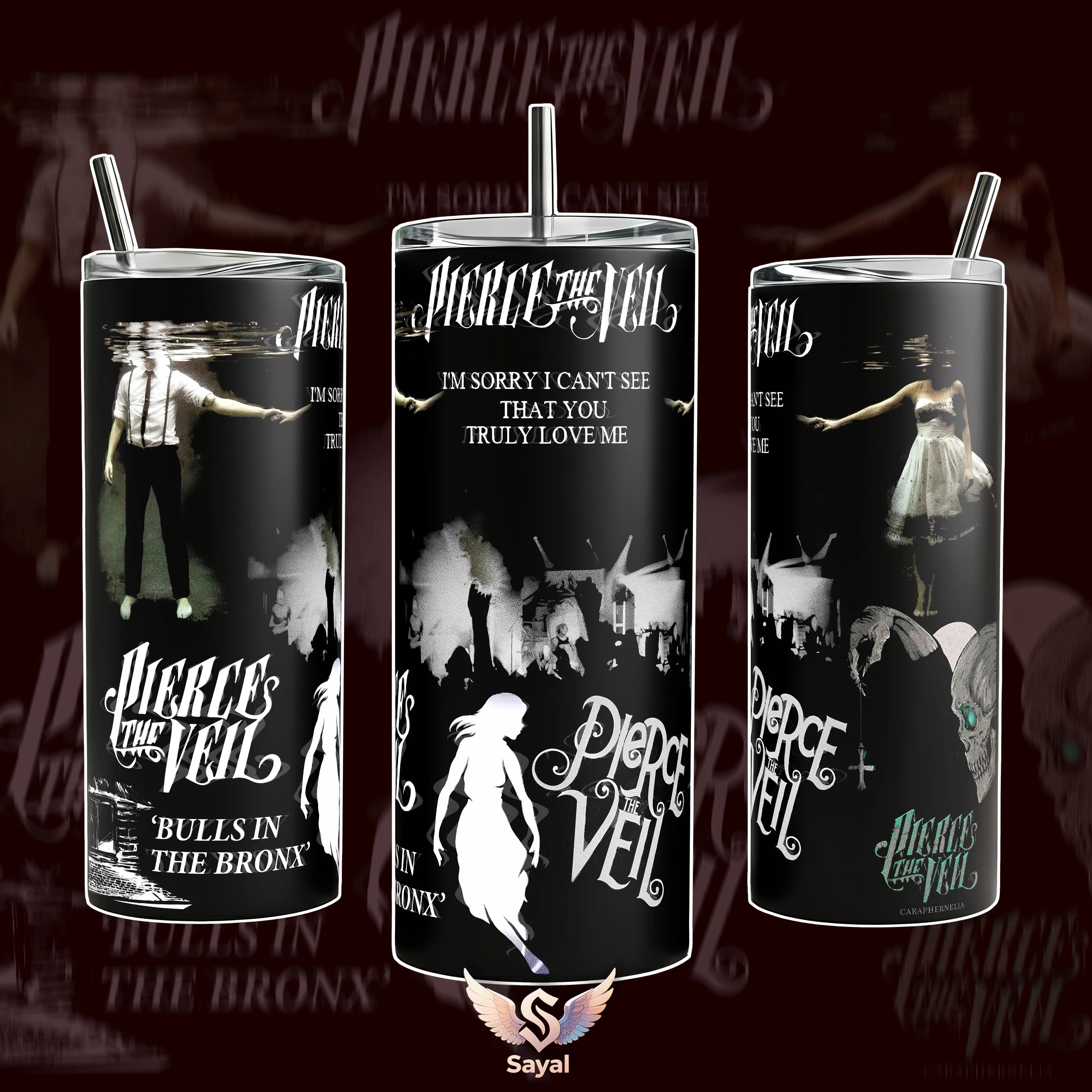 Bulls In The Bronx PTV PIERCE THE VEIL Band Art ALT ROCK Sayal 40 oz Thermal Vacuum Insulated 12H Hot Cold With Handle For Music Lovers & Dark Aesthetic Vibes Emo Punk Style Leak-Proof BPA-Free Stainless Steel Cupholder Friendly Cup For Fans
