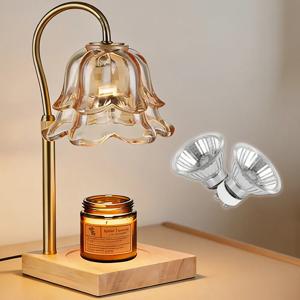 Dimmable Candle Warmer Lamp With Timer Height Adjustable Tulip Flower Candle Lamp Flameless Scented Candle Warmer Solid Wood Base For Bedroom Bathroom