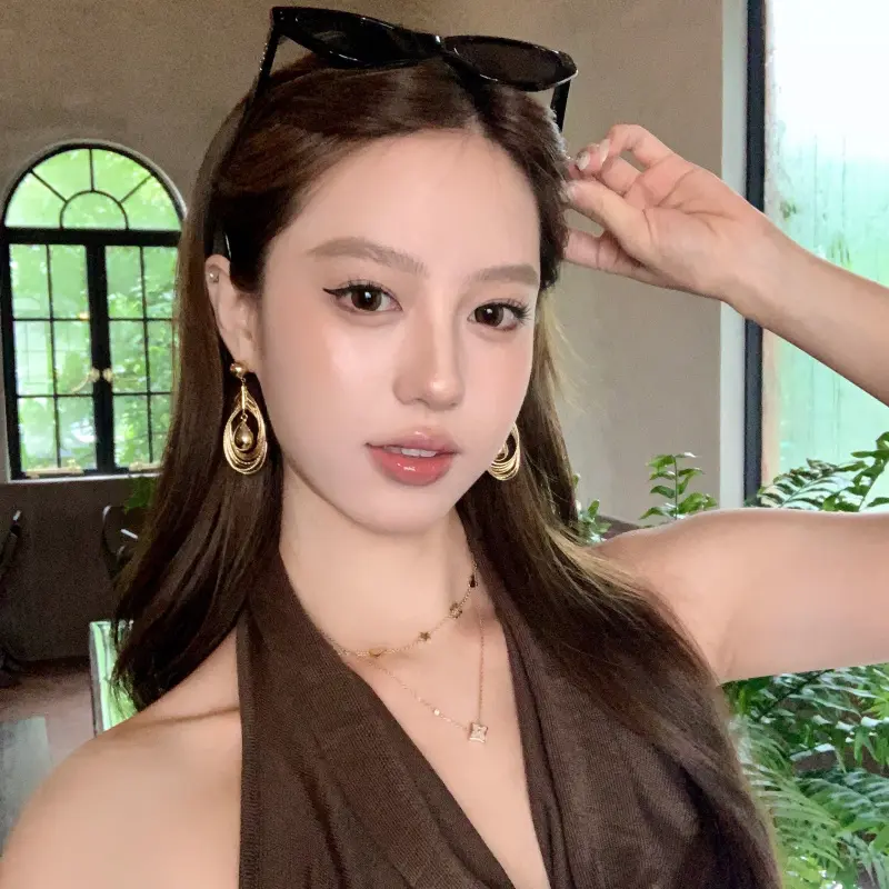 French high-end gold multi-layer teardrop long earrings, women's light luxury vacation style stud earrings, unique and exaggerated earrings