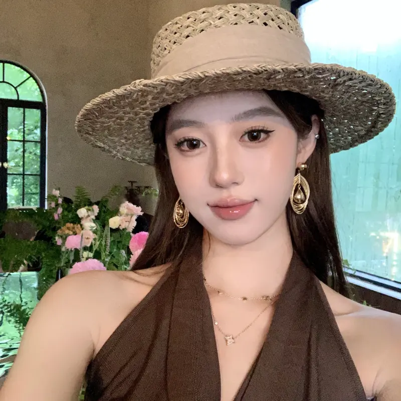 Copper coin earrings, feminine, individualistic, fashionable, light luxury, hollowed-out ear buckles, niche, high-end, versatile and exquisite earrings
