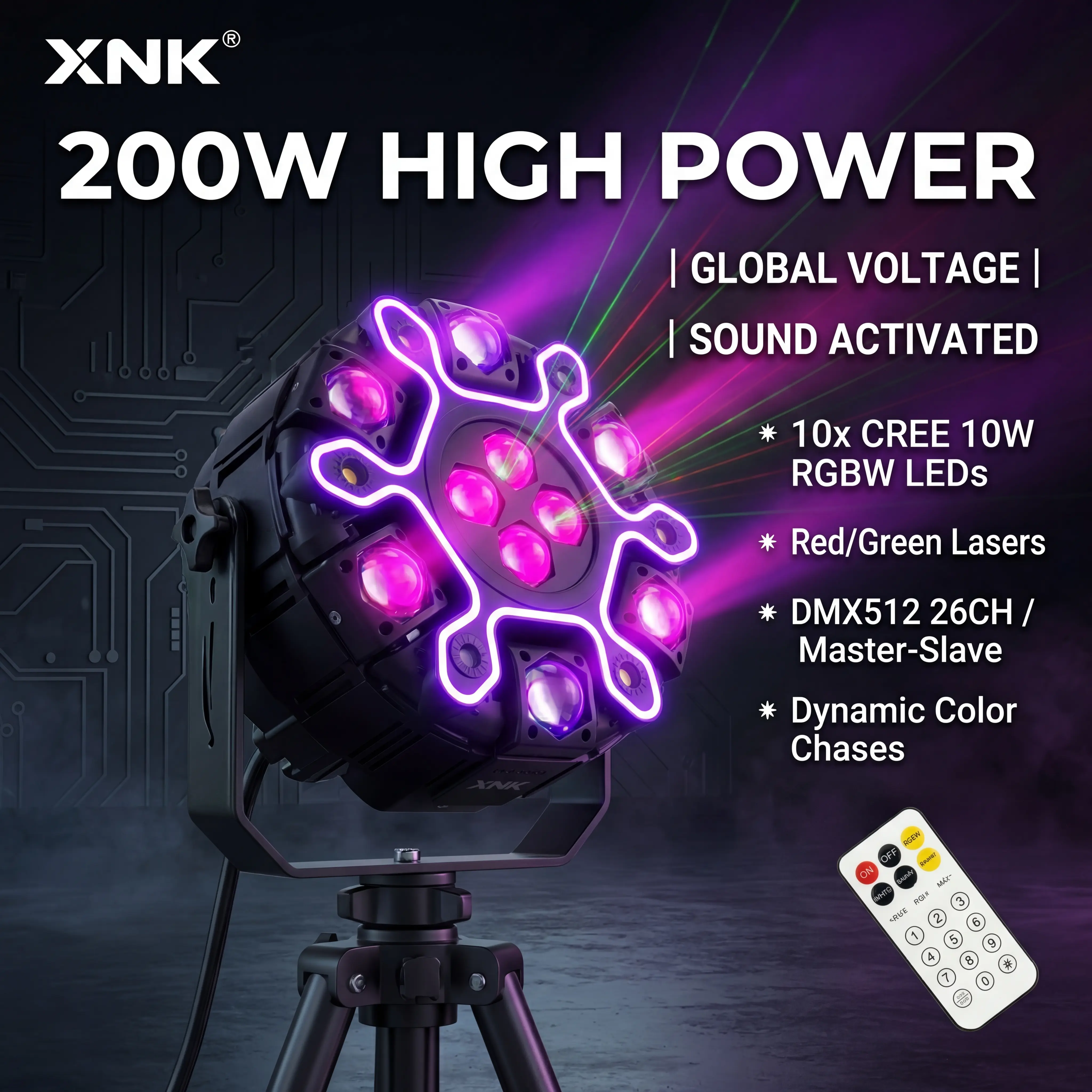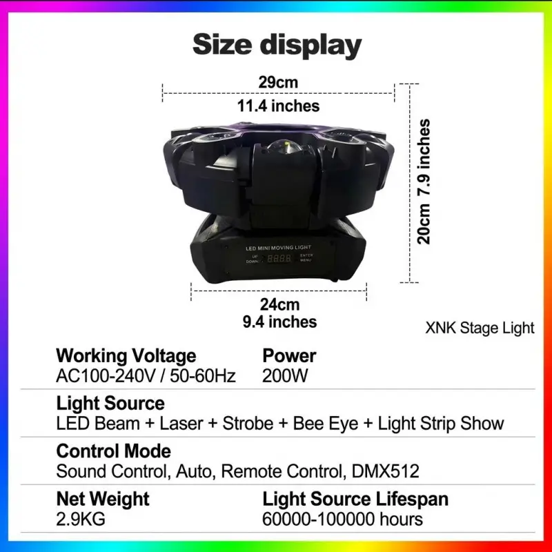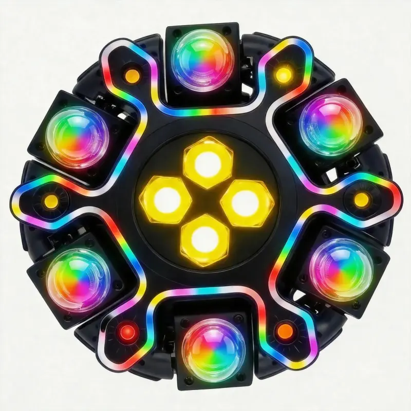Designed for DJs, clubs, and stage performances, this professional lighting fixture delivers vibrant RGBW beams, laser effects, and dynamic strobe lighting to create stunning visual experiences.