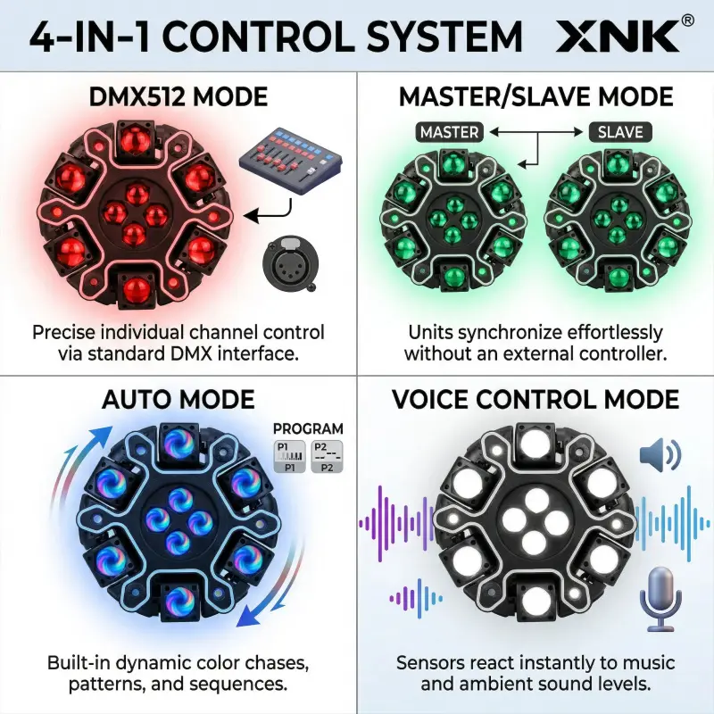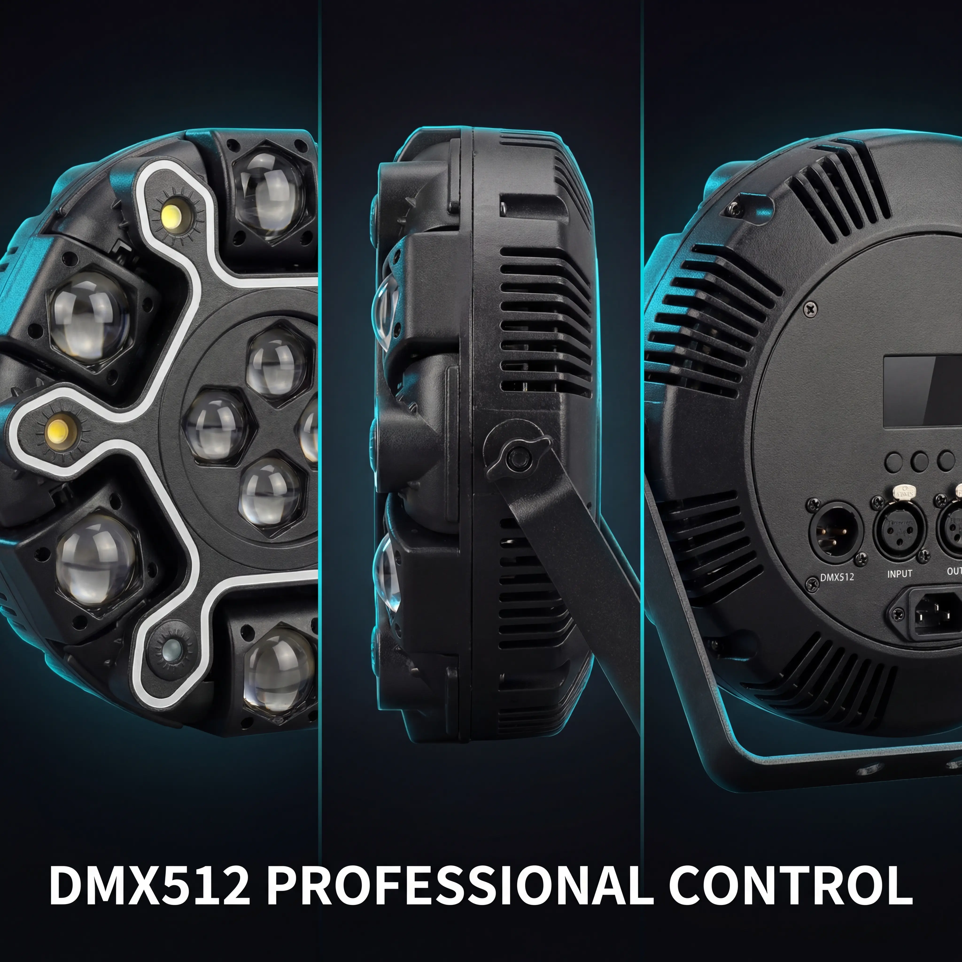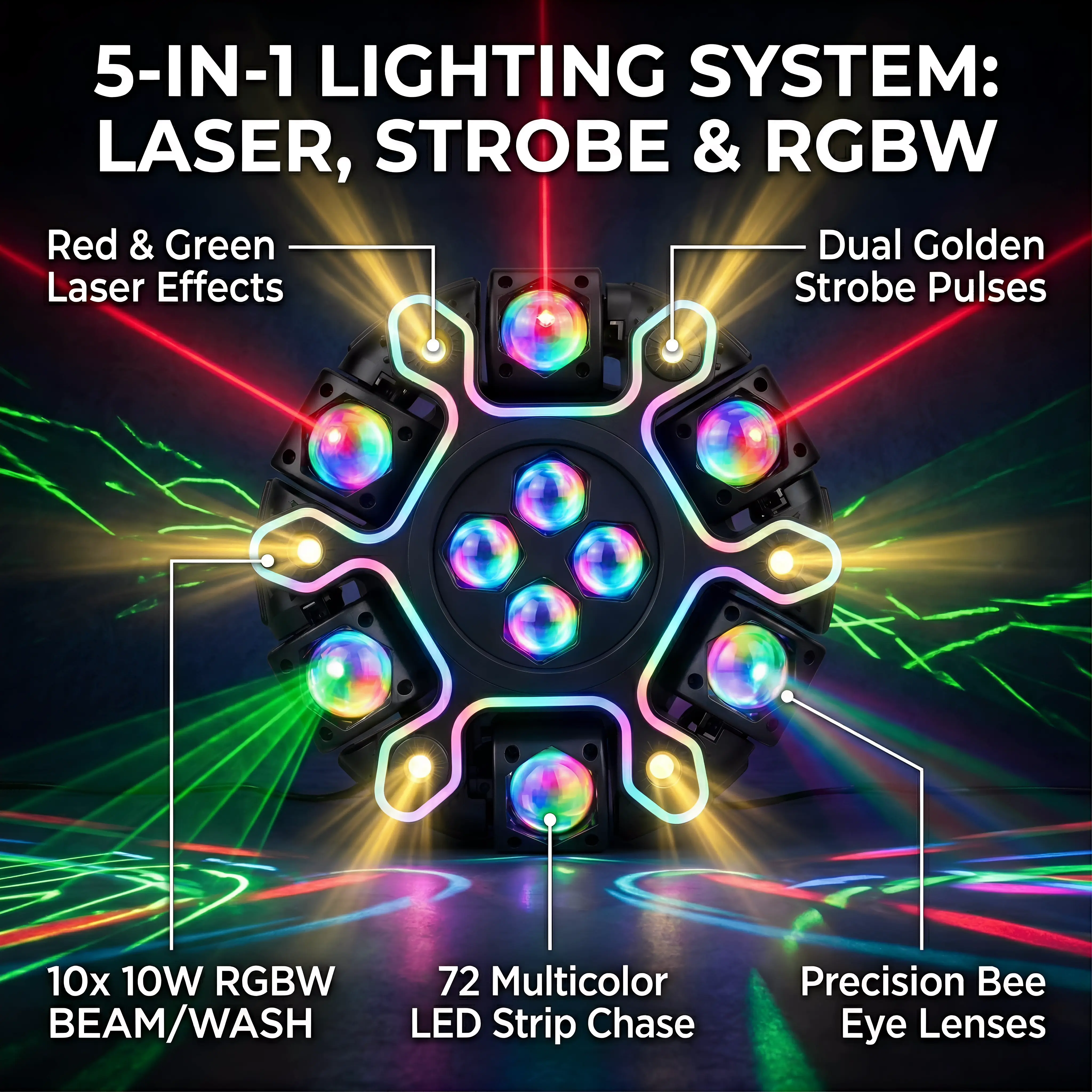 Creates powerful Bee-Eye beam effects, honeycomb lighting patterns, and dynamic stage visuals.
