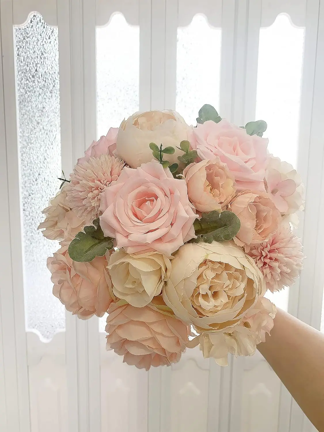Roses Artificial Flowers Burgundy Bouquet Fake Flower with Stems for DIY Bridal Wedding Shower Decorations Party Table Centerpieces Faux Silk Floral Arrangement for Home Decor Indoor Orange
