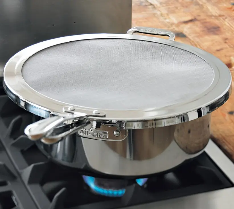 This heavy-duty stainless-steel screen shields your stovetop from splatters when you're cooking messy foods like fried chicken or bacon. The lip of the screen fits over the rim of your pan while the mesh screen lets steam escape.