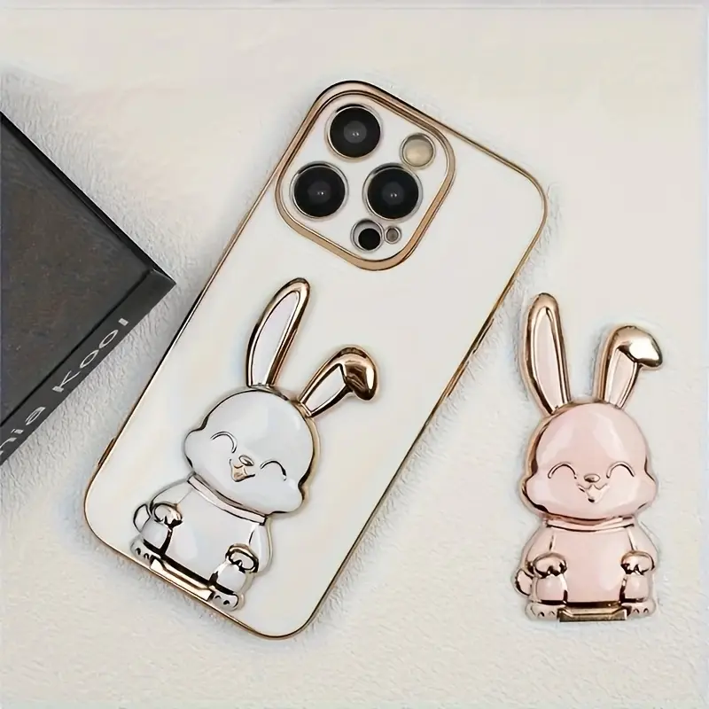 Glitter Electroplated Phone Case With Cute Rabbit Hidden Mirror Stand, Shockproof Slim Protective Cover Compatible With Smartphones 11-17 Pro Max