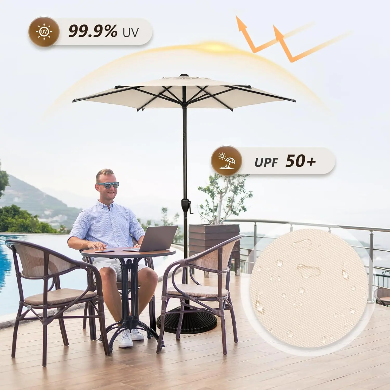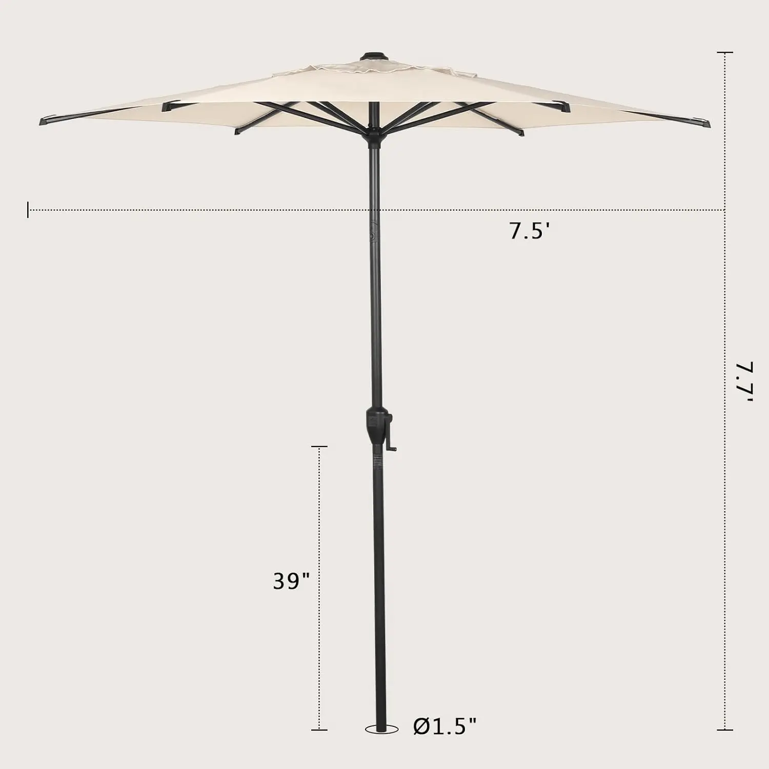 7.5FT Lyon Outdoor Patio Umbrella Outdoor Table Umbrella with Push Button Tilt and Crank Market Umbrella 6 Sturdy Ribs UV Protection Waterproof for Garden Deck Backyard Pool Beige