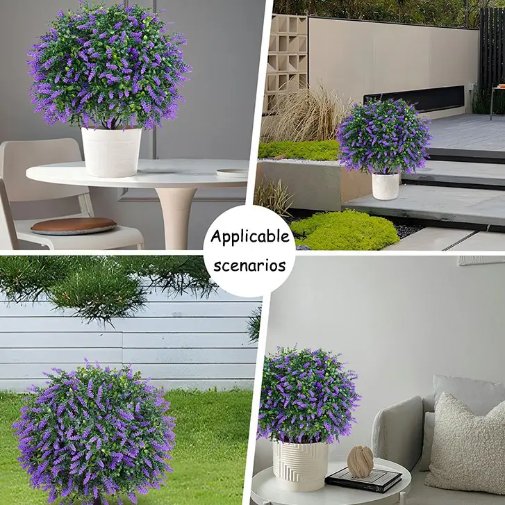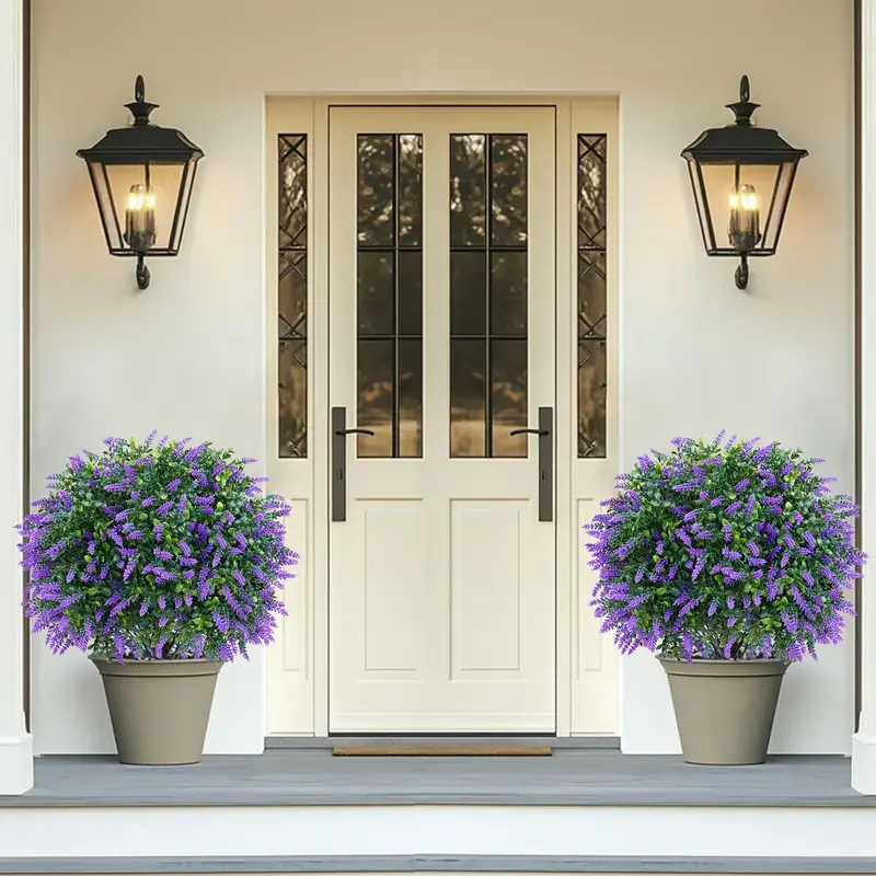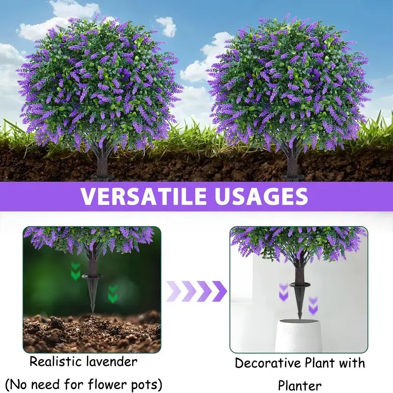 ✨ Transform your decor with our artificial lavender flower arrangements! This set includes 2 pieces, ideal for indoor and outdoor use. The shrubs feature thorns, adding realism. Perfect for porches, outdoor flower pots, and indoor flower pots. These UV-resistant evergreen trees maintain their appearance, ensuring long-lasting beauty. Effortlessly elevate your space with these decorative pieces.