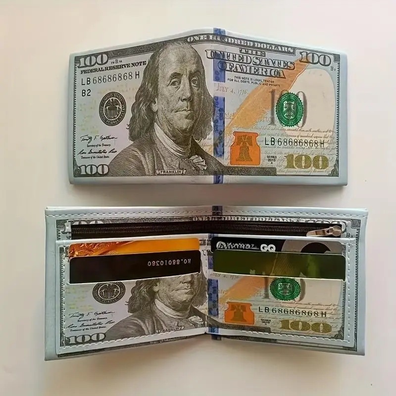 Vintage Retro Dollar Bill Wallet - PU Leather Credit Card Holder Zippered Coin Pouch for Men
