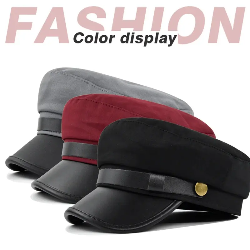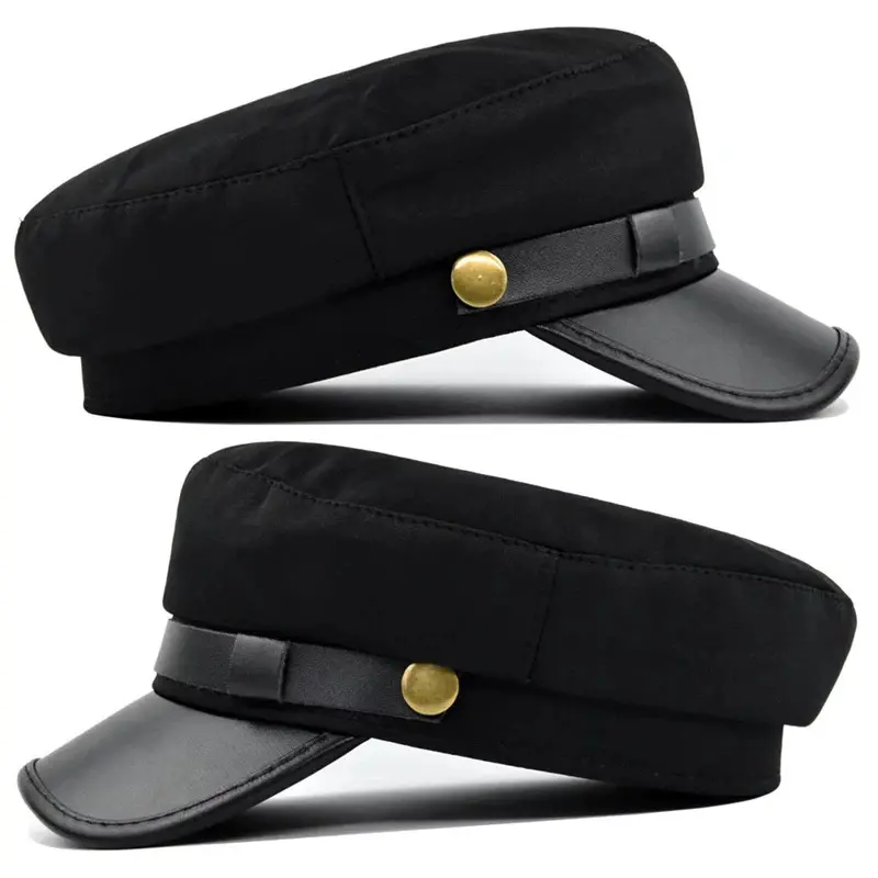 Unisex Military Flat Top Hat, Polyester Woven Street Style, Sun Protection Cap for Men And Women