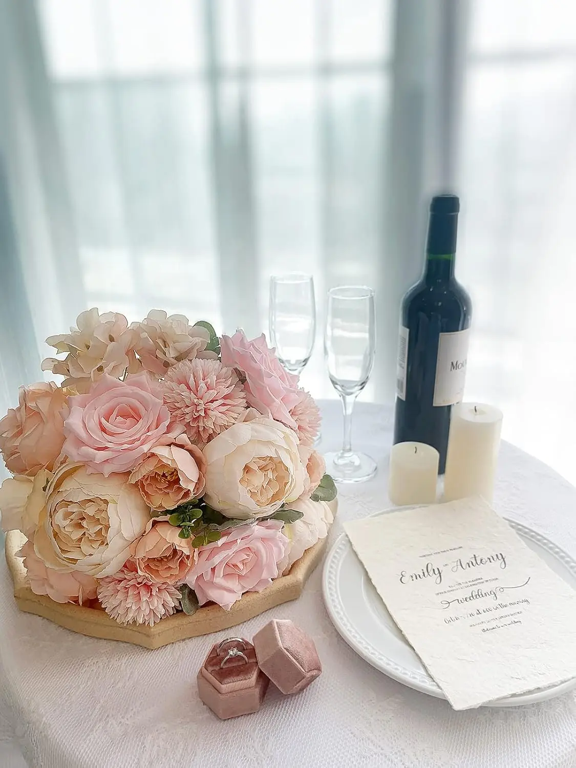 Roses Artificial Flowers Orange Bouquet Box Set Fake Flower with Stems for DIY Bridal Wedding Shower Decorations Party Table Centerpieces Faux Silk Floral Arrangement for Home Decor Indoor