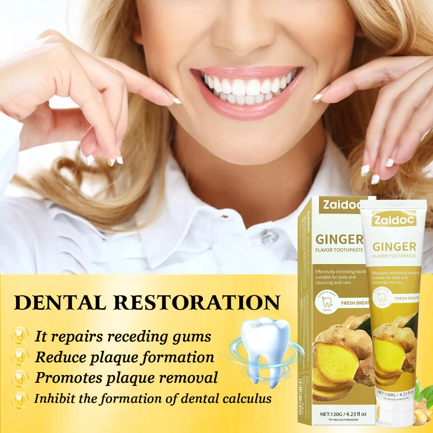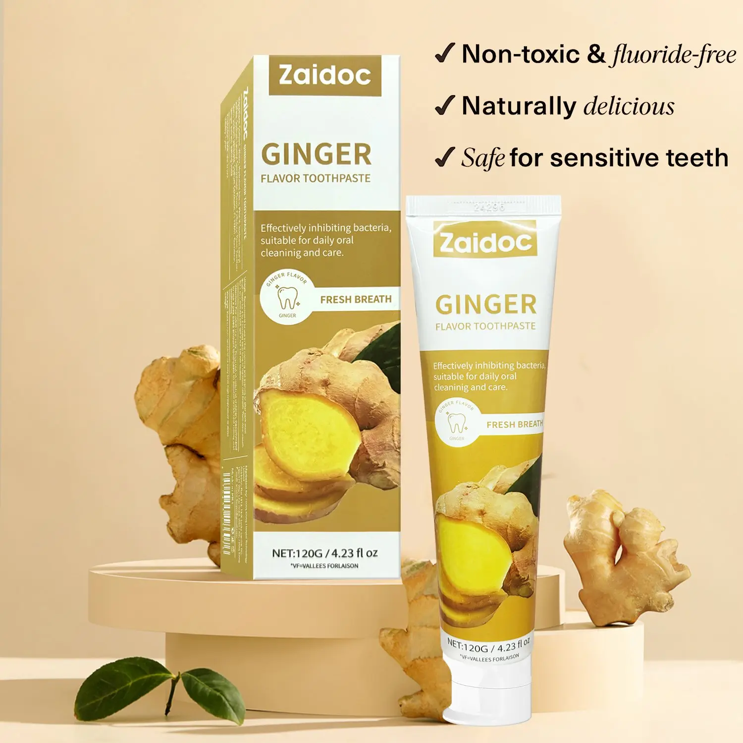 Zaidoc Ginger Toothpaste | Remove Stains, Repair Gums, Freshen Breath, Fluoride-Free, Safe for Sensitive Teeth 120g