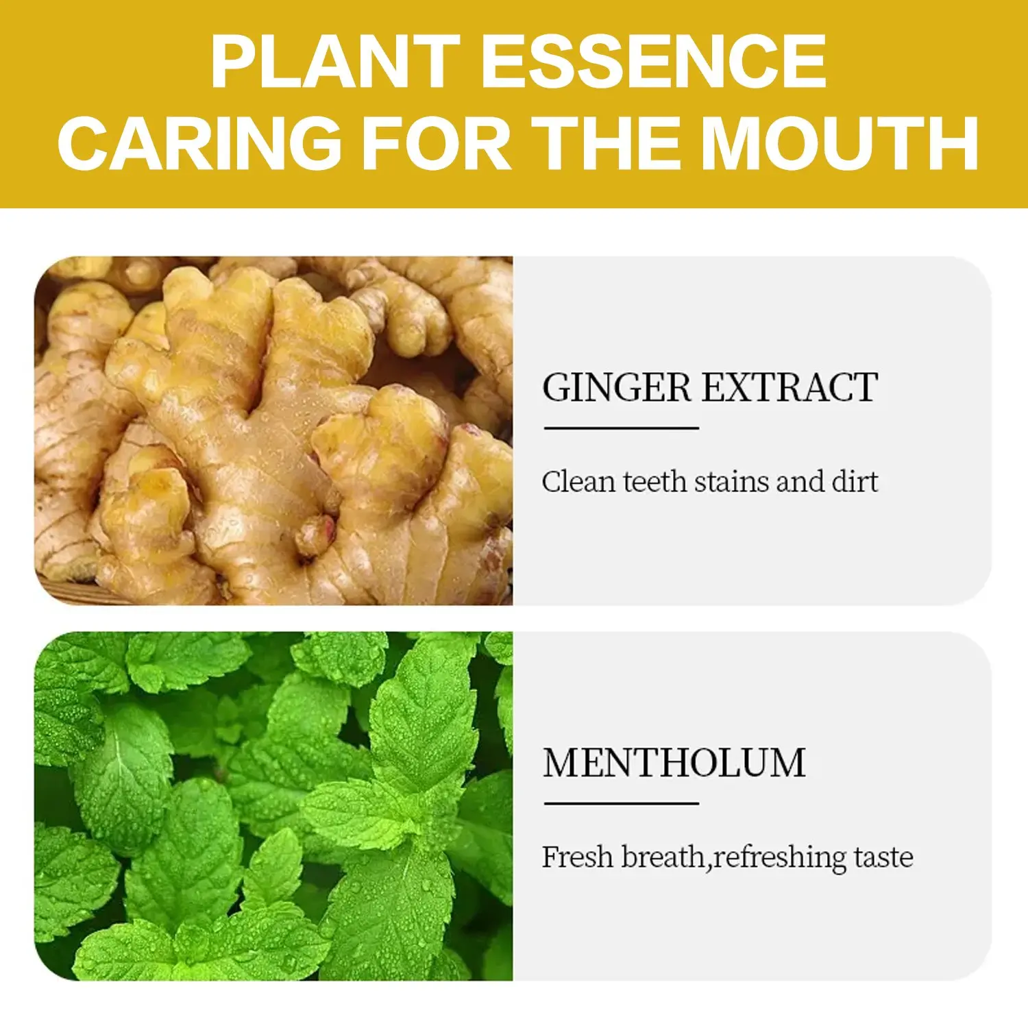 ·Natural Ginger & Menthol Formula: Infused with ginger extract to clean stains and menthol for long-lasting fresh breath