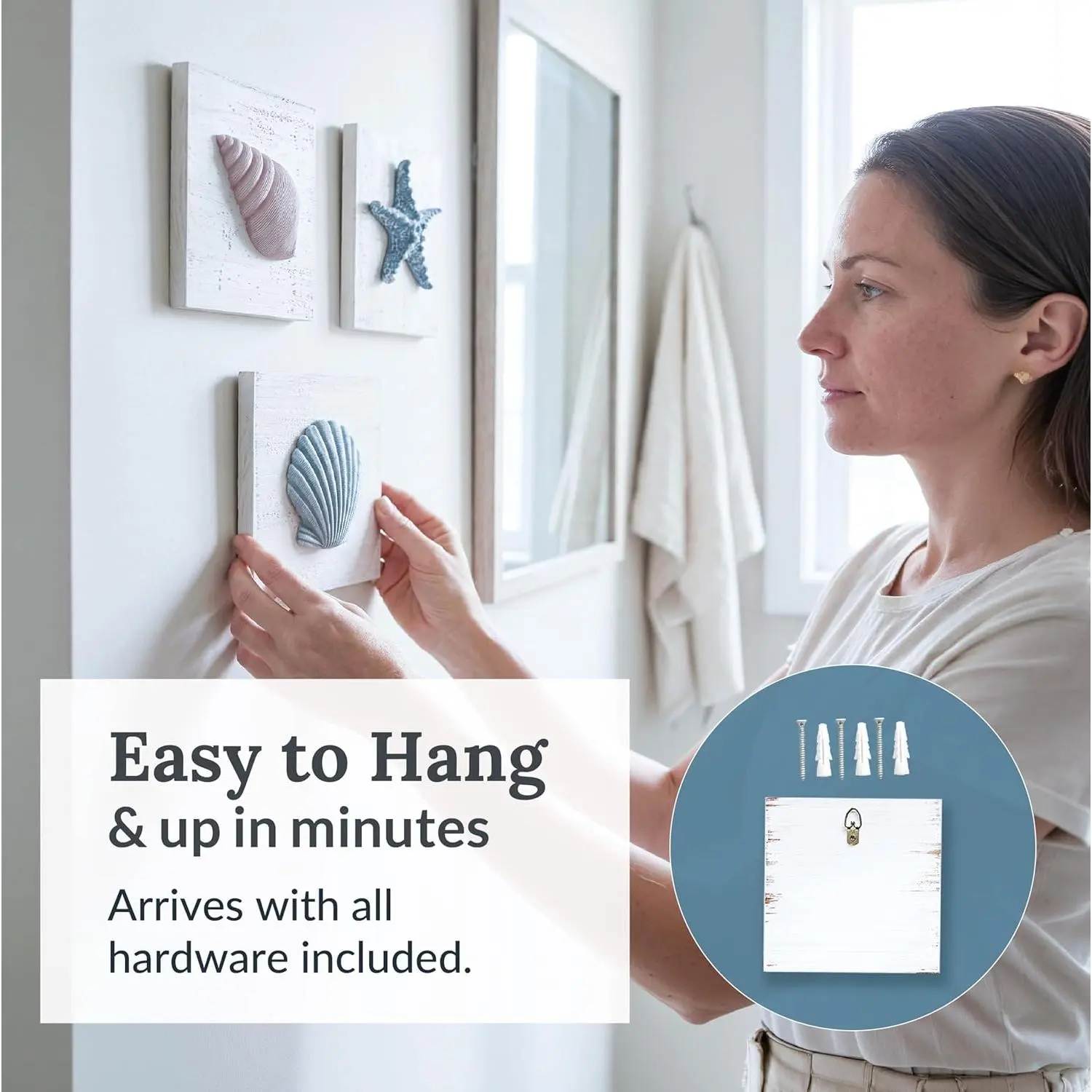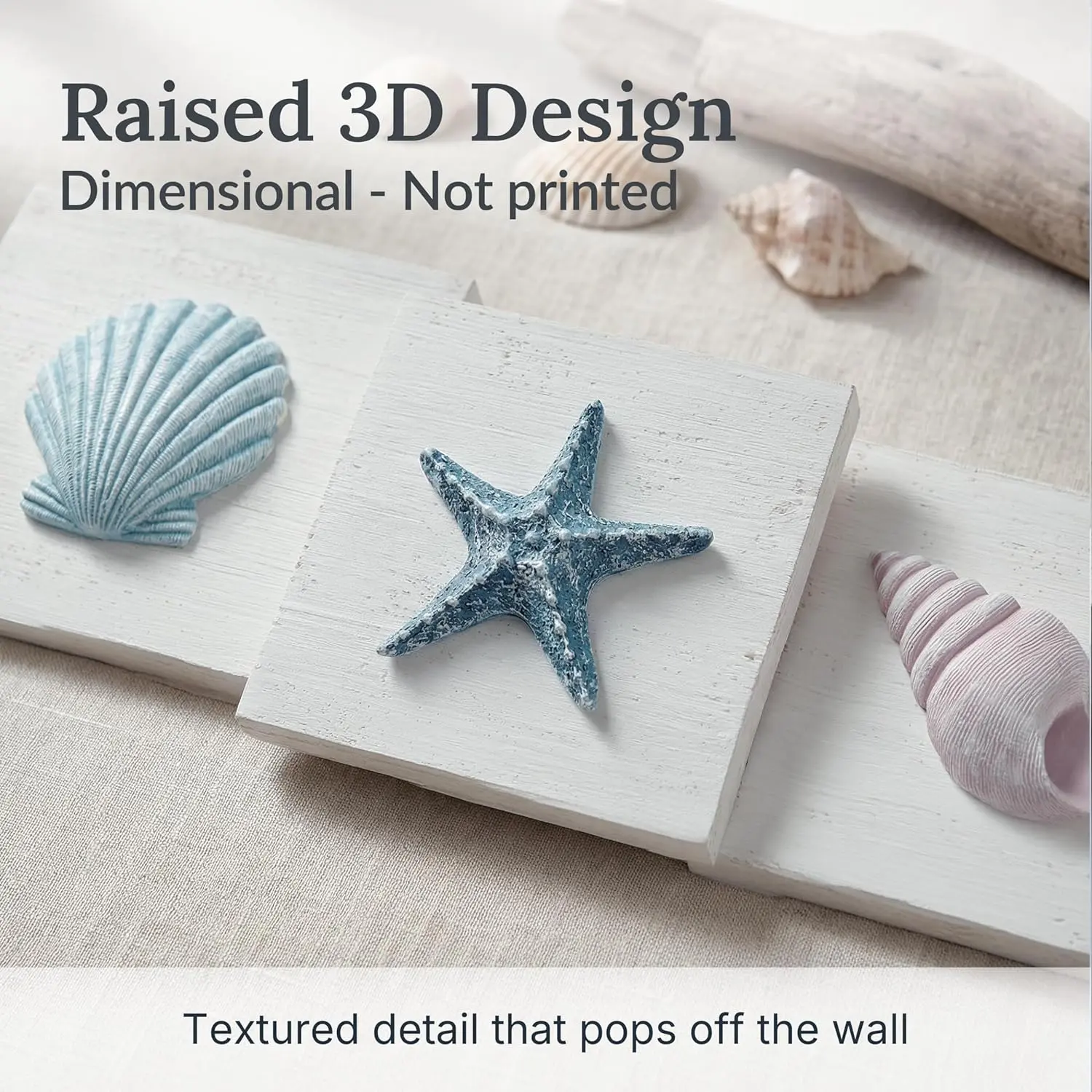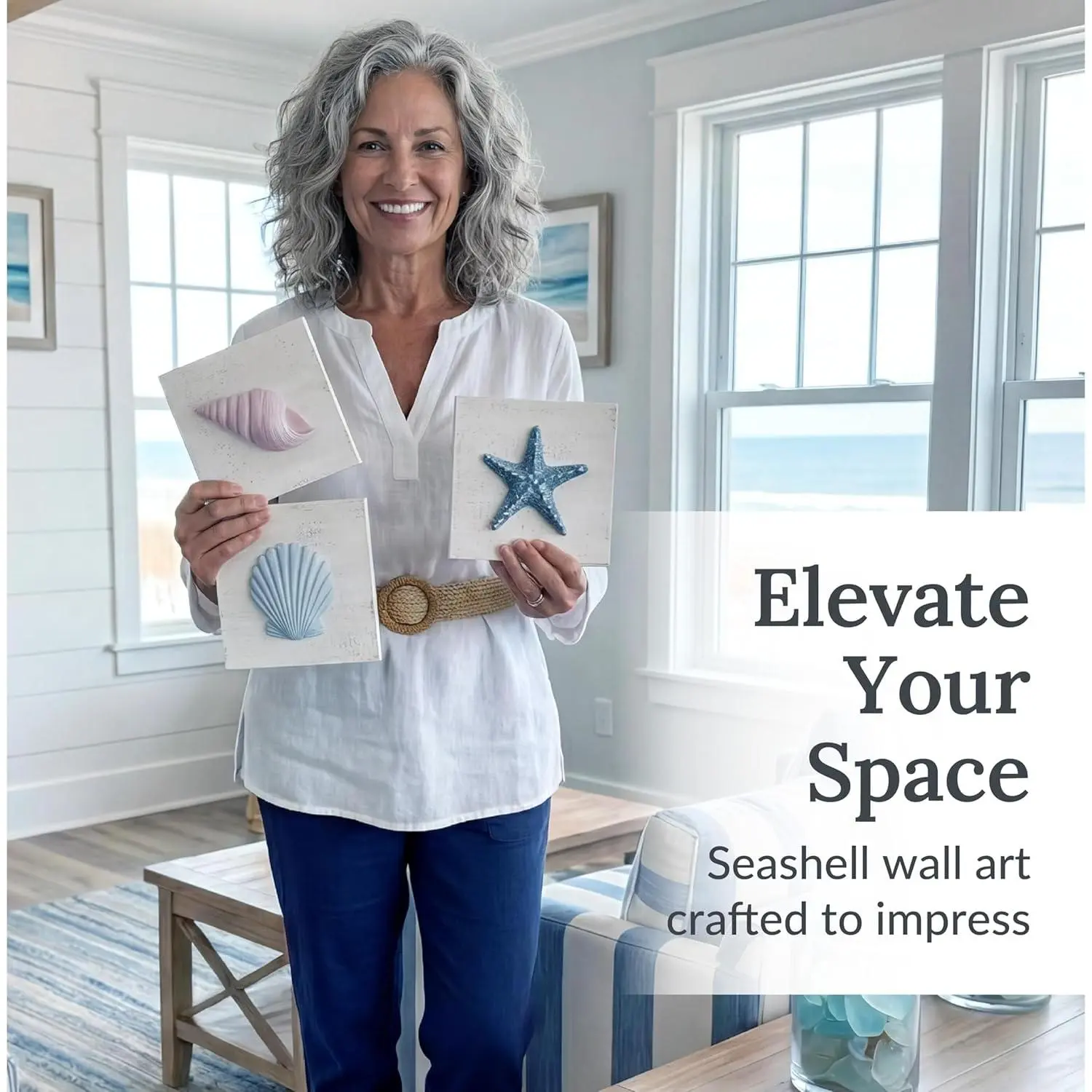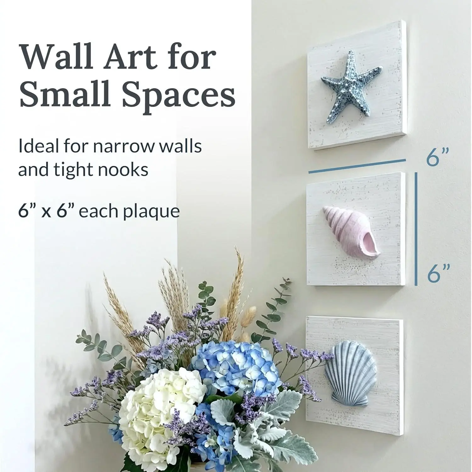 Featuring three beach beauties:a starfish, a conch shell, and a scallop shell,this elegant set is a coastal decor essential wall accent.