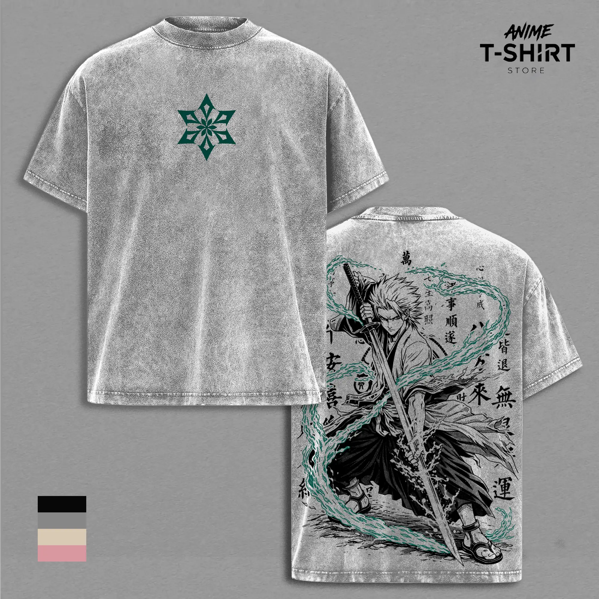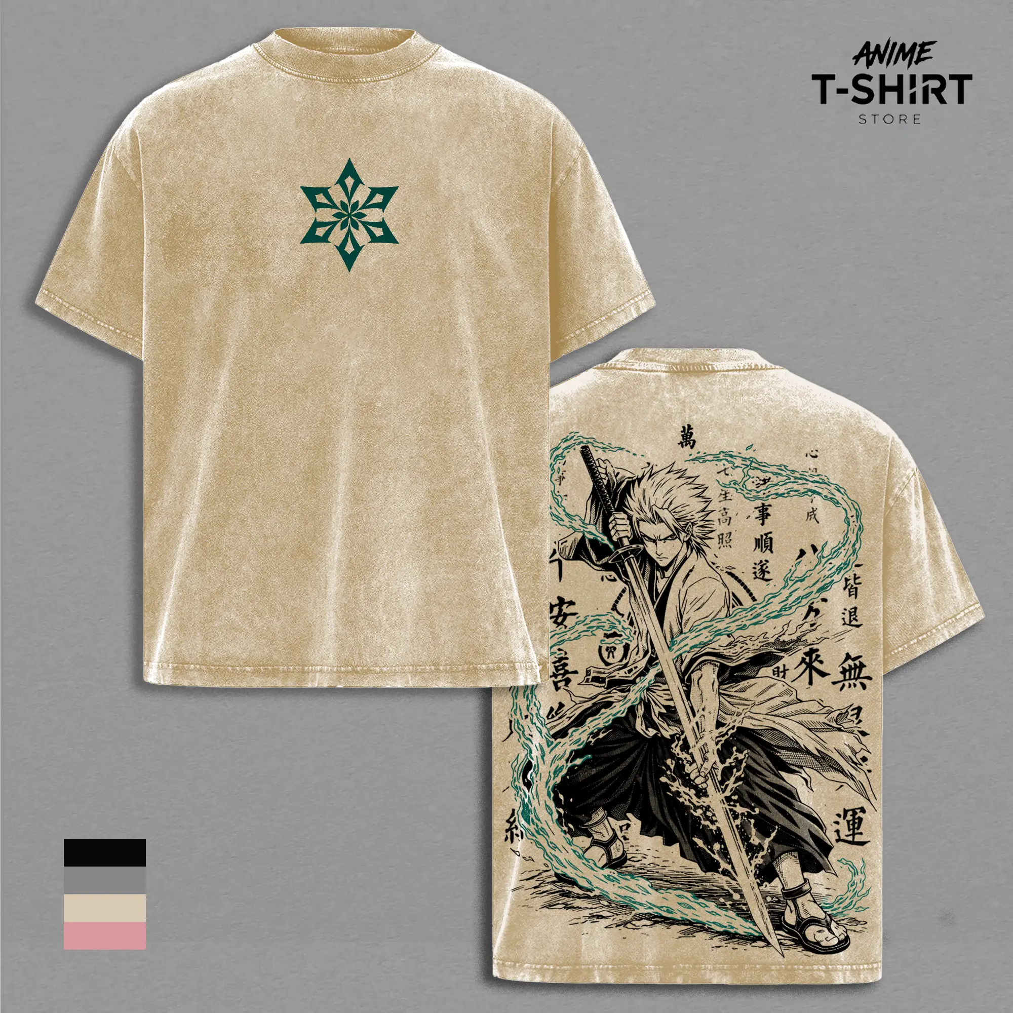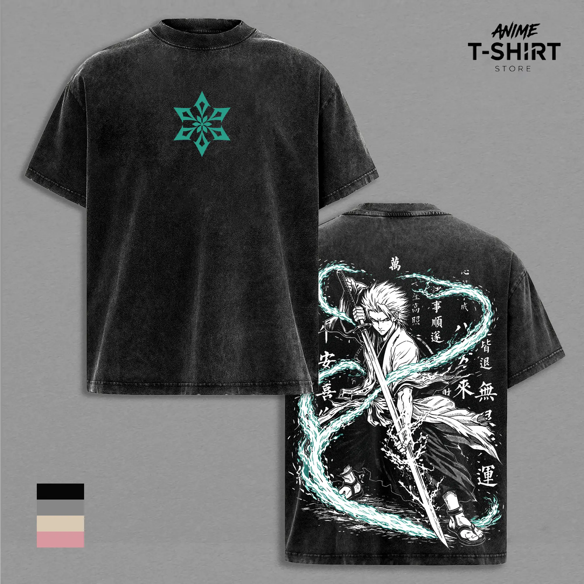 5. Toshiro Hitsugaya Bleach Anime Shirt Vintage Washed Graphic Tee Unisex Streetwear Manga Design Captain Hitsugaya Ice Zanpakuto Bleach T Shirt Gift for Anime Fans
