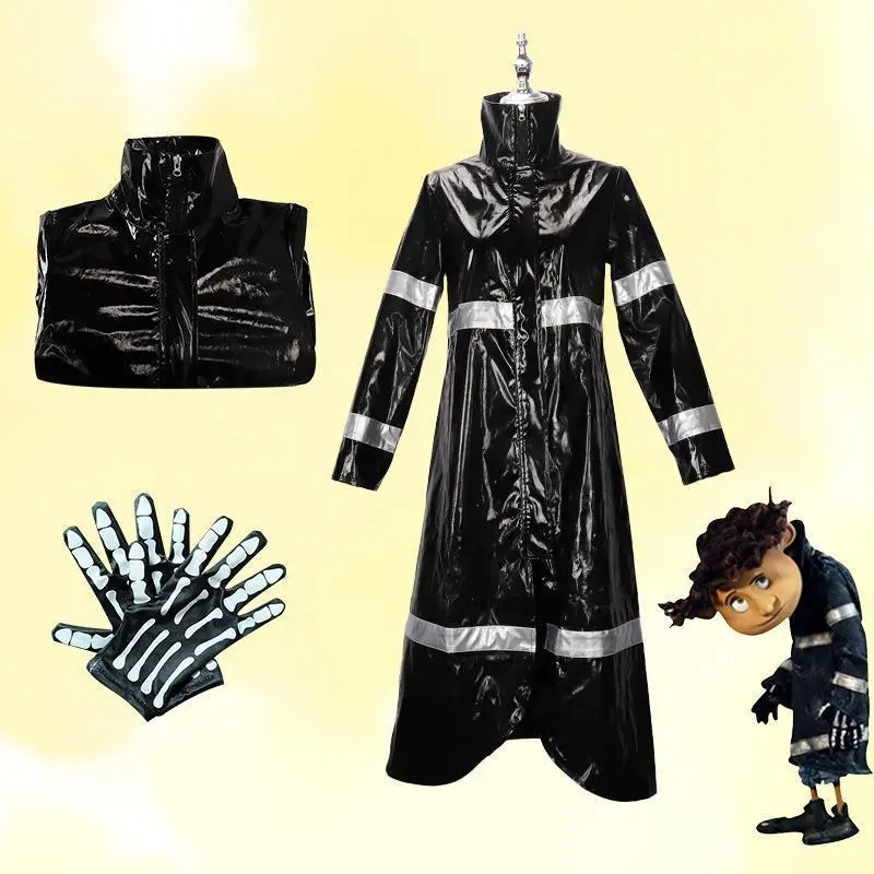 Movie Coralin Cosplay Costume Wybie COS Coat Adult Halloween Dress Up Party Yellow Raincoat Jacket Anime Cartoon Costume Wig