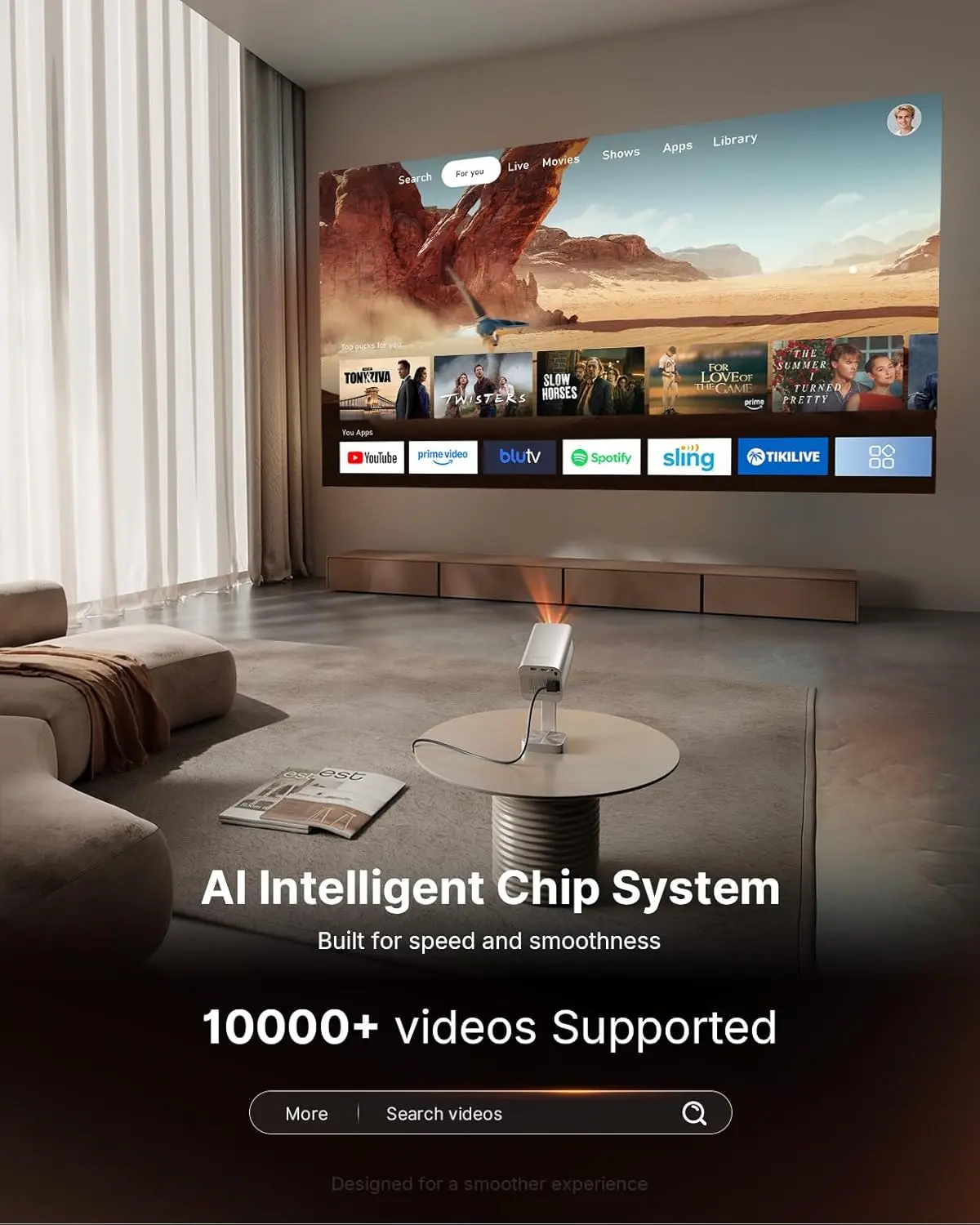 ·[Smart Projector with Officially-Licensed APP– Stream Anywhere] - This projector compatible with Netflix comes with built-in streaming apps for the ultimate convenience. Whether you’re enjoying a cozy night in bed or camping under the stars, just a tap lets you stream thousands of movies and shows from Netflix, Prime Video, YouTube, and more. With smooth performance, vivid visuals, and reliable stability, this video projector brings the big-screen experience to any place, anytime.
